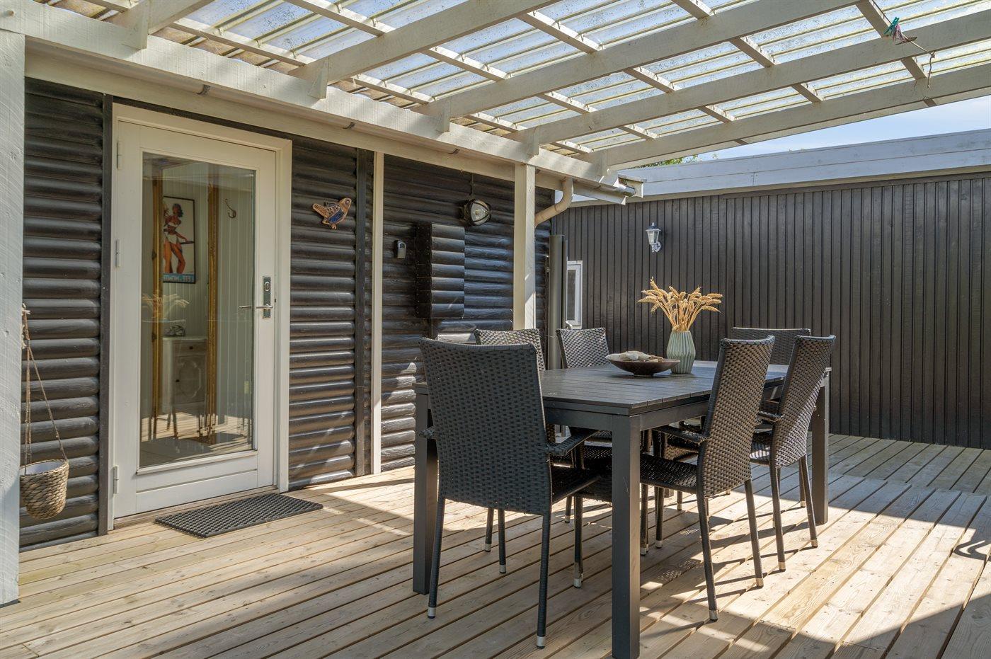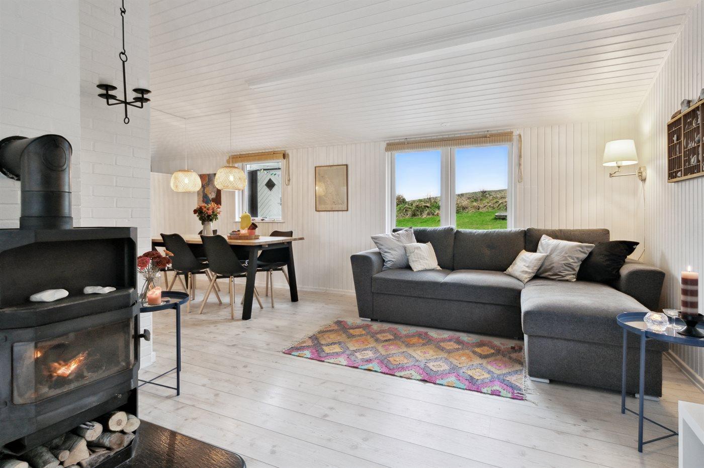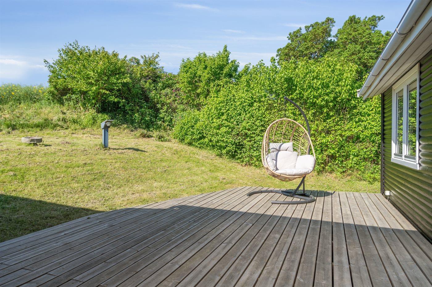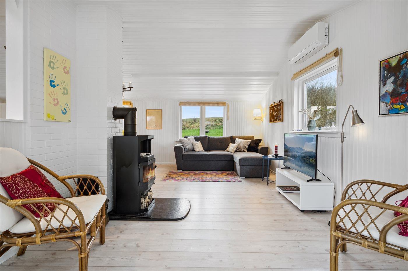 Flot, lyst og moderniseret sommerhus kun 75 m fra dejlig badestrand. Huset er nydeligt indrettet og har bl.a. en skøn udestue, hvorfra der er udsigt over haven. Både foran og bagved huset er der anlagt træterrasse. Den sydvendte terrasse ligger bag huset i god læ bag skrænt og er delvist overdækket. Huset ligger på en stor grund, hvor der er god plads til udendørs aktiviteter.