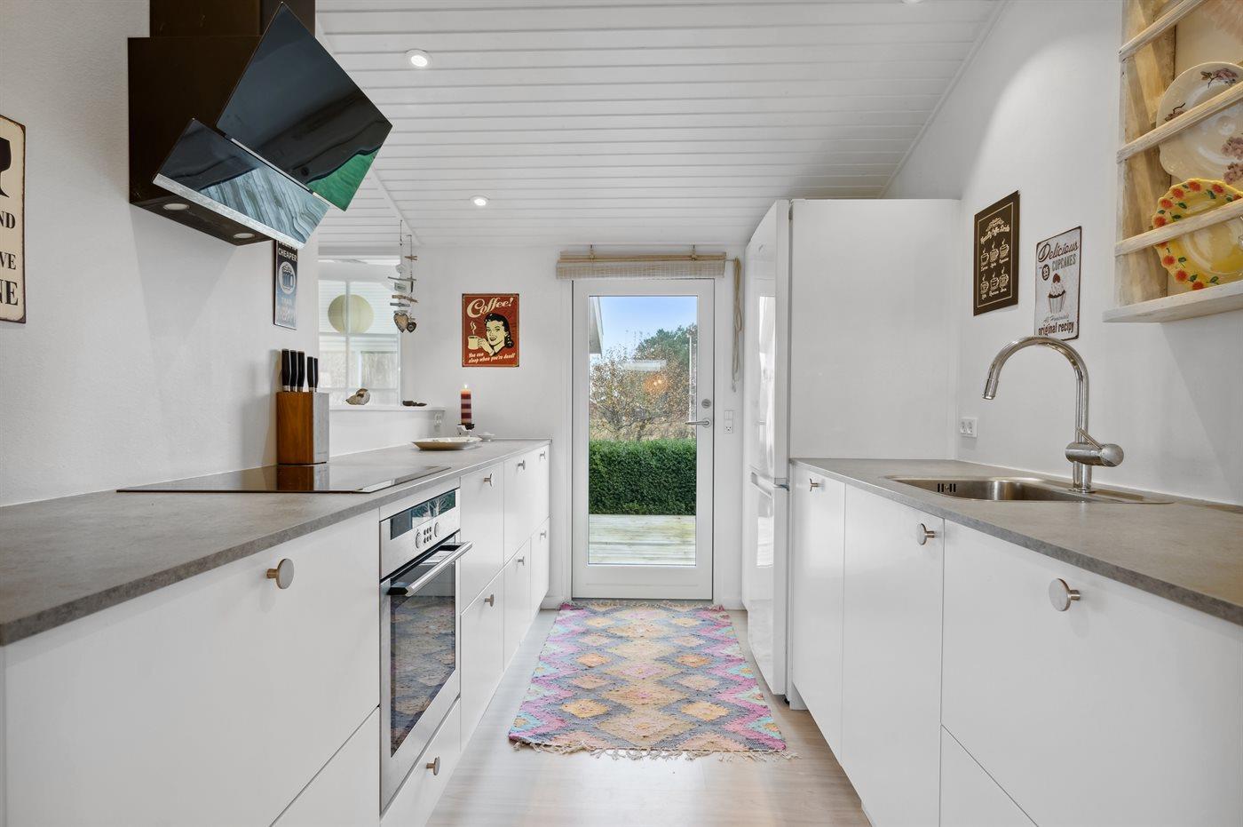 Køkkenet er udstyret med 1 køleskab. Der er 4 induktionskogeplader, varmluftovn, mikrobølgeovn samt opvaskemaskine.