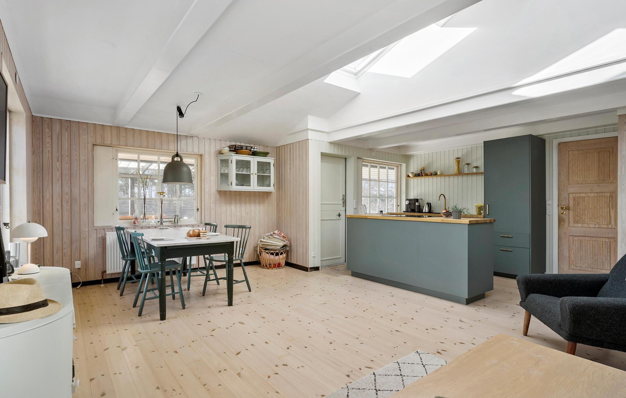 Velkommen til en stor, dejlig naturgrund, hvor dette eksklusive sommerhus venter på jer. Huset emmer af ro og kvalitet med lækre indretningsløsninger, som vil gøre jeres ophold ekstra behageligt. Tænd op i brændeovnen og slå jer ned i den komfortable sofa. Brug det moderne køkken til at sammensætte skønne måltider og dæk derefter op til en middag ved spisebordet i det store fællesrum.