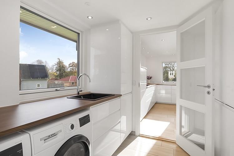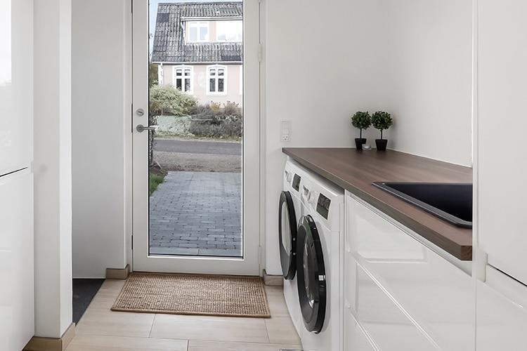 Huset har 3 dejlige badeværelser og naturligvis både vaskemaskine og tørretumbler.