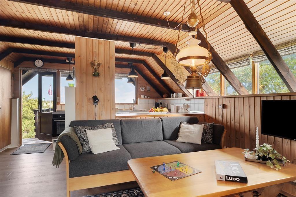 Sommerhus i Ballen, Østjylland, med plads til 3 voksne, 2 børn og 1 husdyr. Der er en hyggelig indretning, og du finder desuden vaskemaskine og opvaskemaskine i boligen.