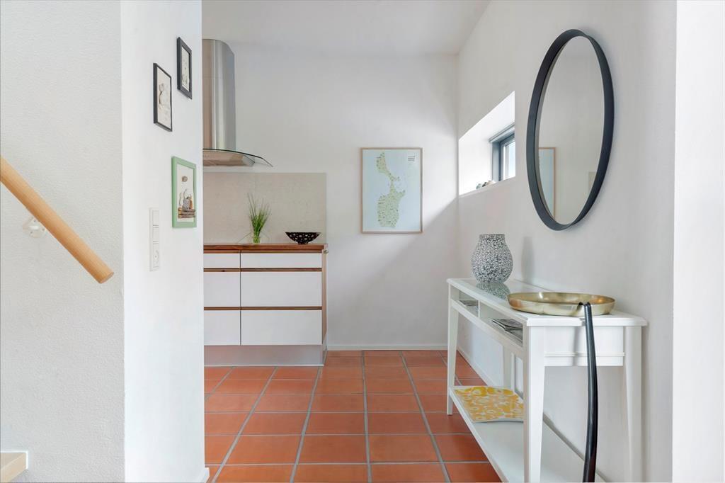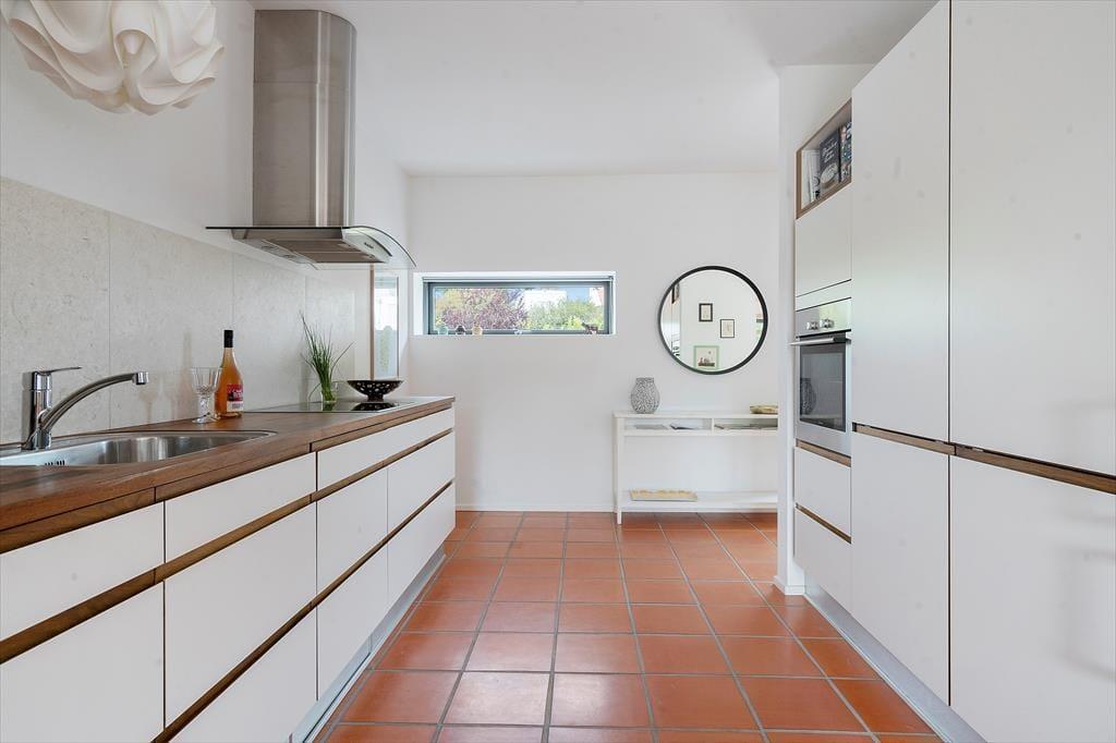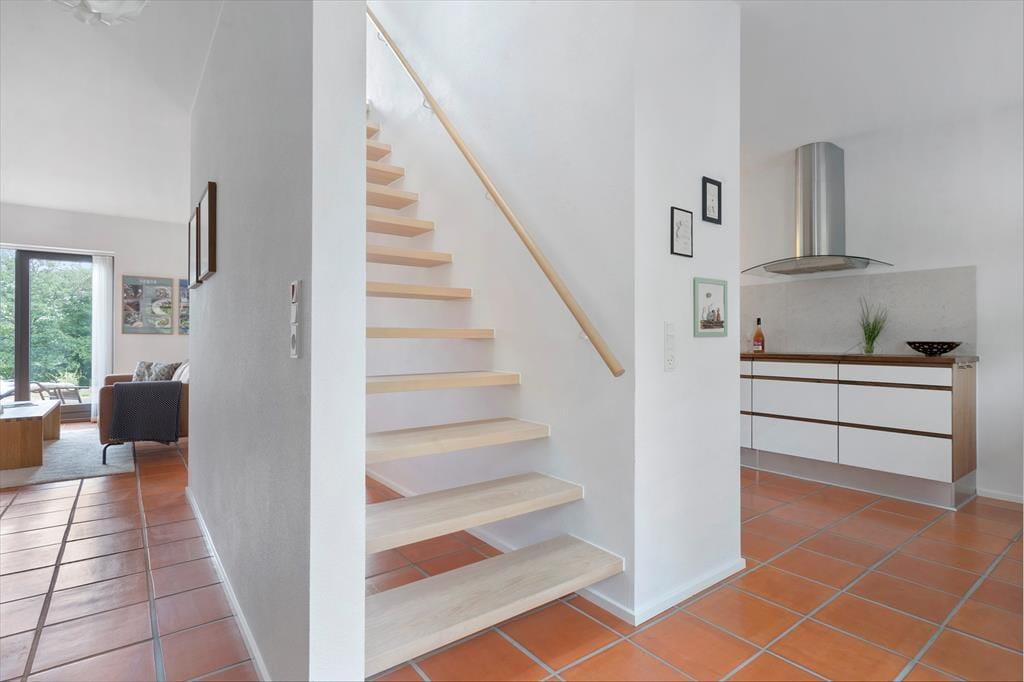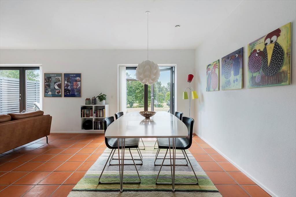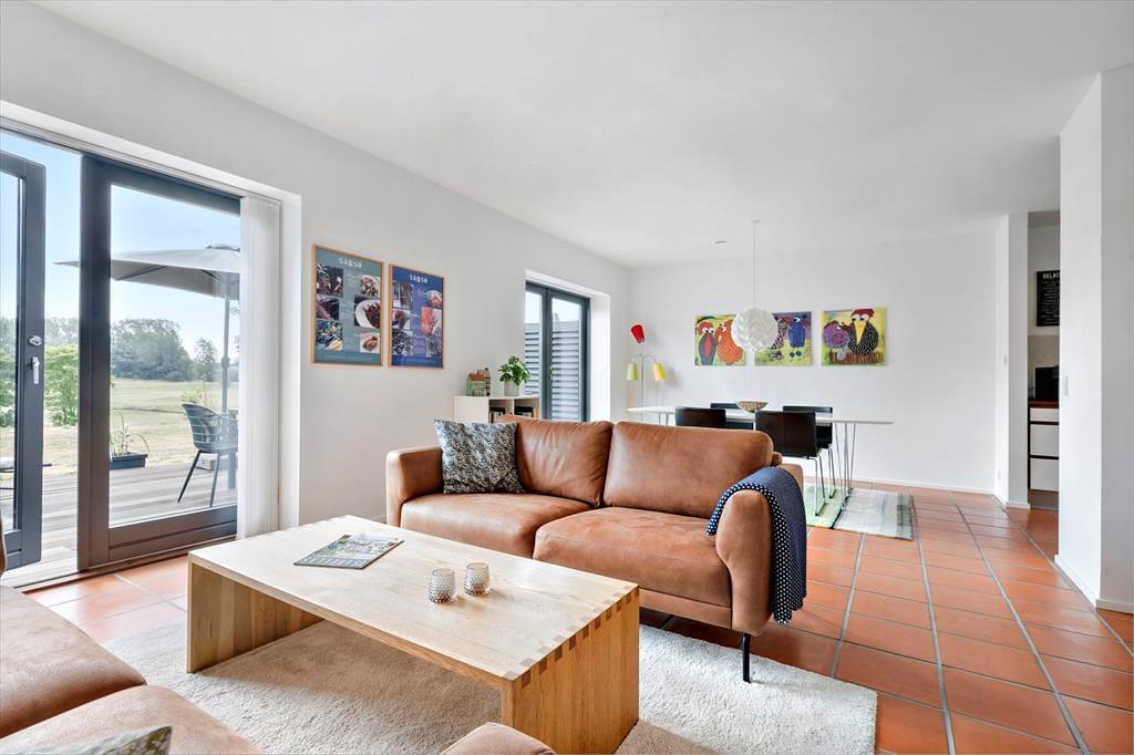 Gennemgående i husets stueetage er et flot klinkegulv. Hele boligen er lys, åben og moderne med en god rumfordeling, så det er let at føle sig godt tilpas, være sammen og slappe helt af her.