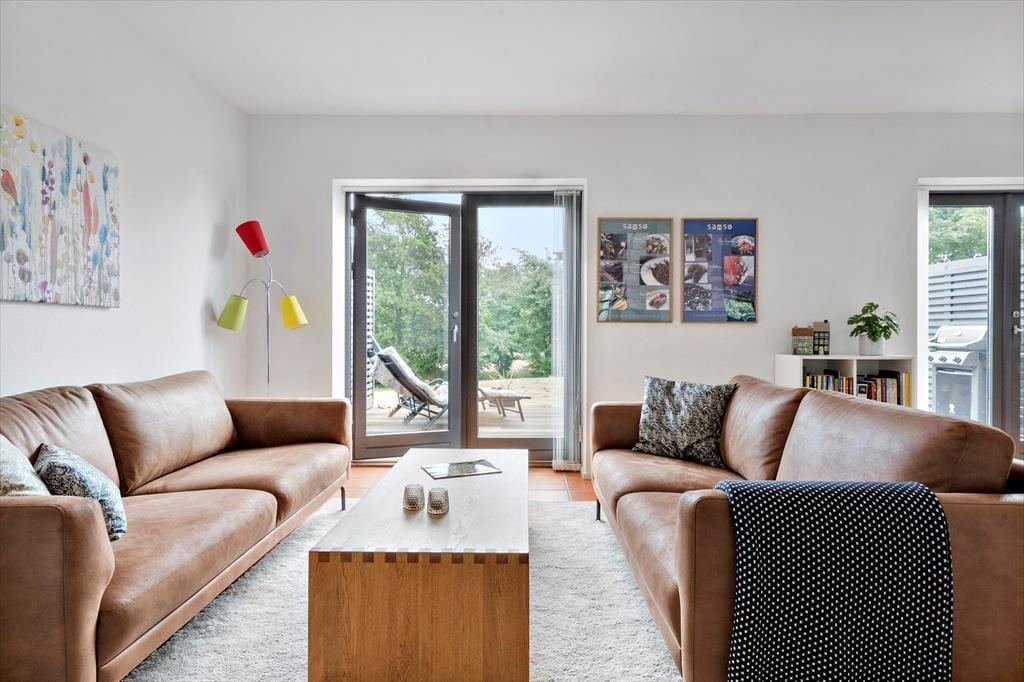 I sammenhæng med spisebordet er en sofa og bløde stole, hvor I kan hygge jer med et spil, eller tænde for det væghængte TV med Chromecast samt danske TV-kanaler. I huset er der også internet, I frit kan benytte sig af.