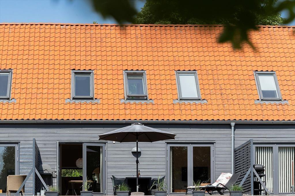 På træterrassen er der gode havemøbler samt en parasol og grill, så når det er muligt, er det oplagt at bruge terrassen som et ekstra uderum til både afslapning og madlavning.