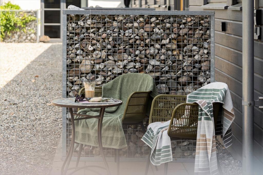Du kommer næsten ikke tættere på en af Danmarks smukkest beliggende golfbaner, Samsø Golfklub ved Besser på det sydlige Samsø. Fra stuen og køkken/alrummet er der udgang til en dejlig aflukket terrasse, hvor højt stakit skærmer af, så man kan opholde sig her helt ugeneret. Til gengæld er der en dejlig udsigt til golfbanen, der er grøn og frodig. Du kan altså både nyde den grønne udsigt og følge med i golfspillet på banen.
