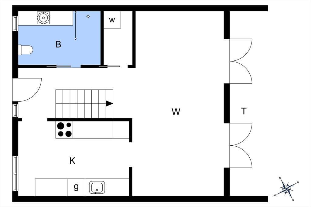 Køkkenet er i åben forbindelse med husets entre, spisebord og stuen. Køkkenet er godt udstyret med bl.a. køle/fryseskab, opvaskemaskine og ovn samt kogeplader. I kan let tilberede alle feriens måltider her, som kan nydes ved spisebordet, hvor der er god plads til at I alle kan sidde. Ved spisebordet og i stuen er der store glas-terrassedøre med direkte udgang til terrassen. De store vinduespartier giver et dejligt lys ind i køkken/alrummet. Der er også ideelt at tage sine måltider med udenfor, når vejret tillader det.