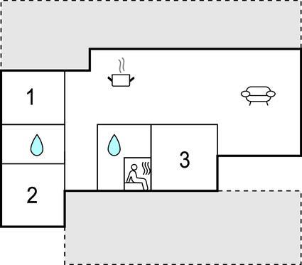 Badeværelse (nr. 2) - WC. Varmt og koldt vand. Bruser