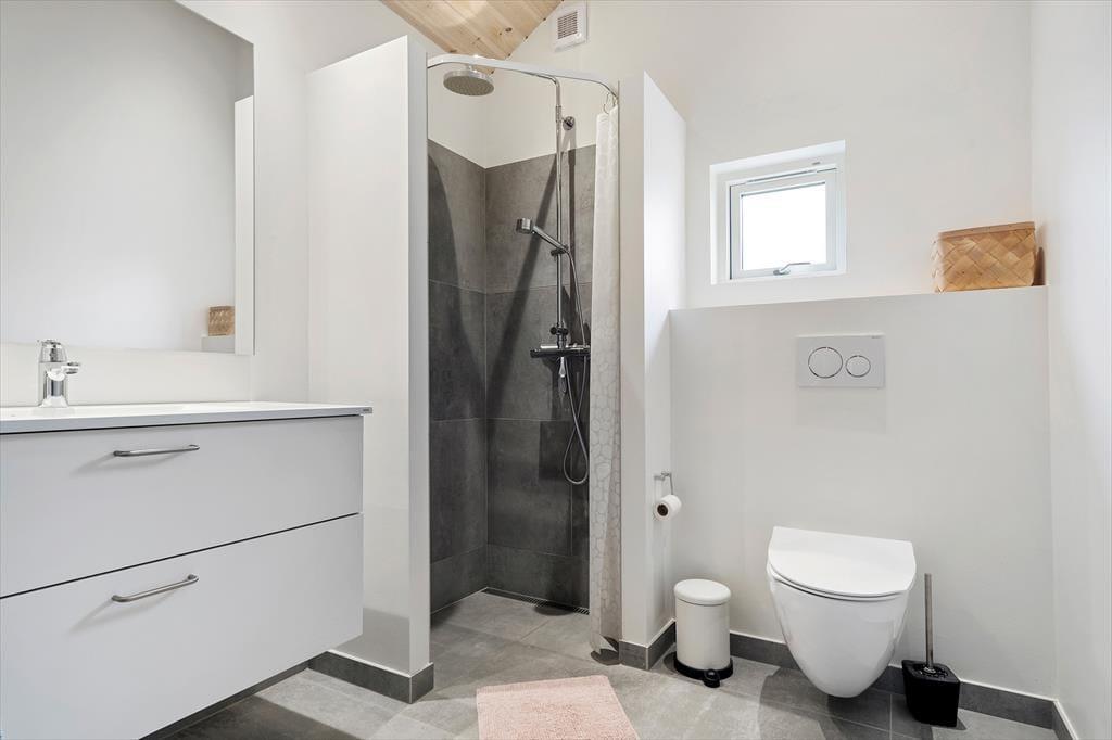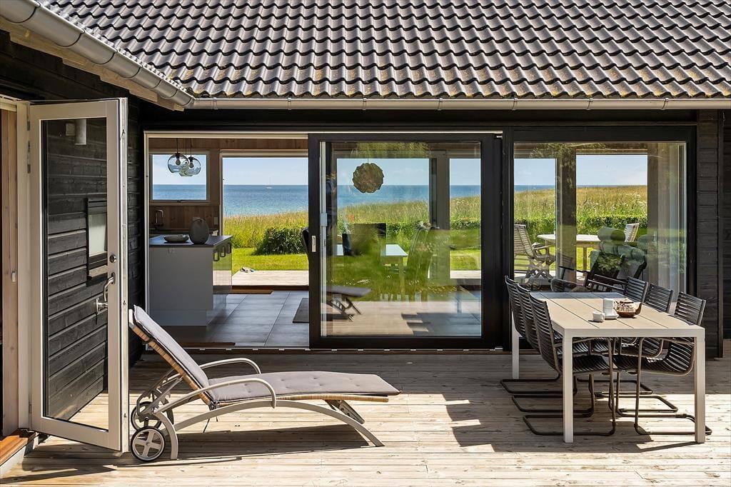 Ved siden af spiseområdet og stuen er der en havedør, som fører ud til en østvendt terrasse. Det er oplagt at tage måltiderne med udenfor og nyde udsigten til havet og den omkringliggende natur.