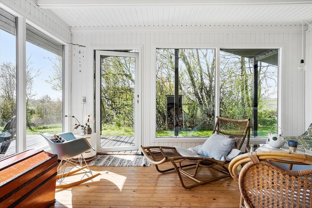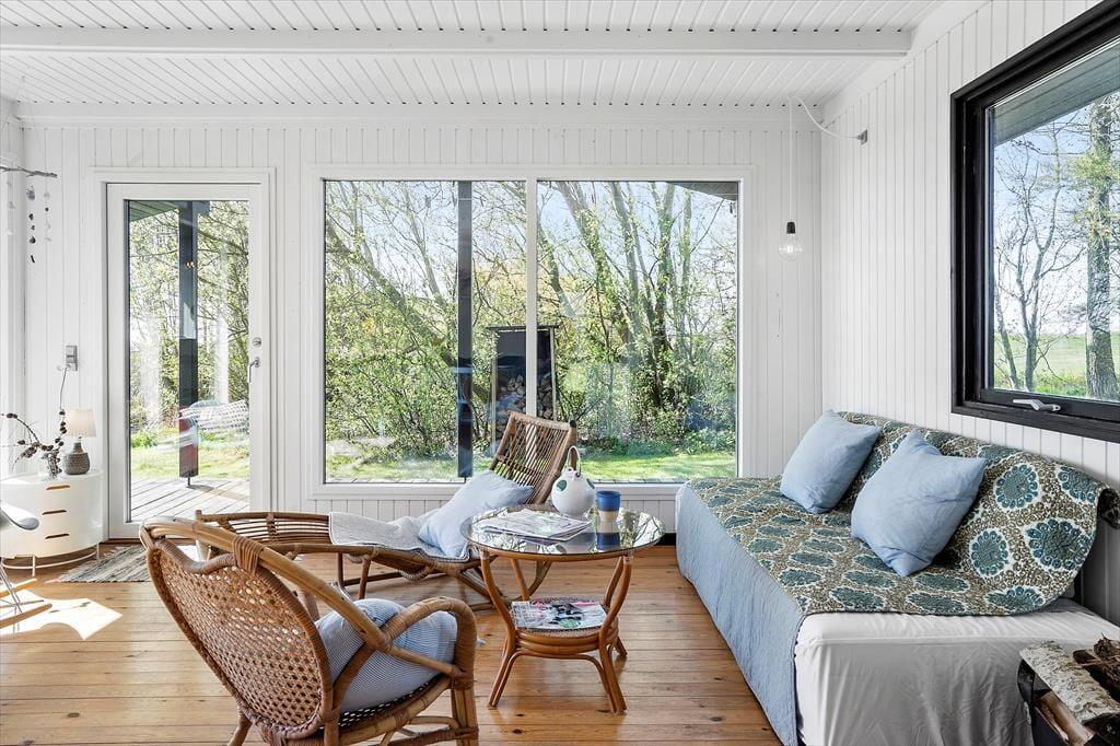 Sommerhuset har en dejlig stor have med træ terrasse. Huset er et klassisk og hyggeligt træhus med brændeovn og autentisk sommerhus indretning. Kun 150 meter fra huset er der en dejlig strand, hvor man kan bade eller nyde en gåtur. Kun 2 km ligger Ballen by hvor man kan fornøje sig med forskellige restauranter.