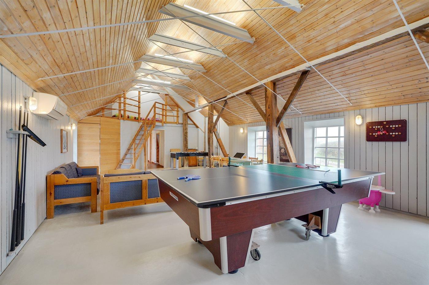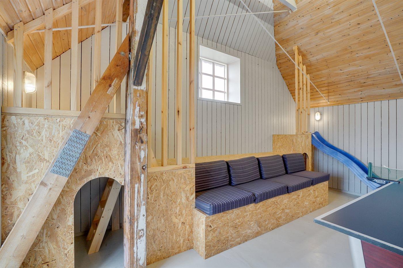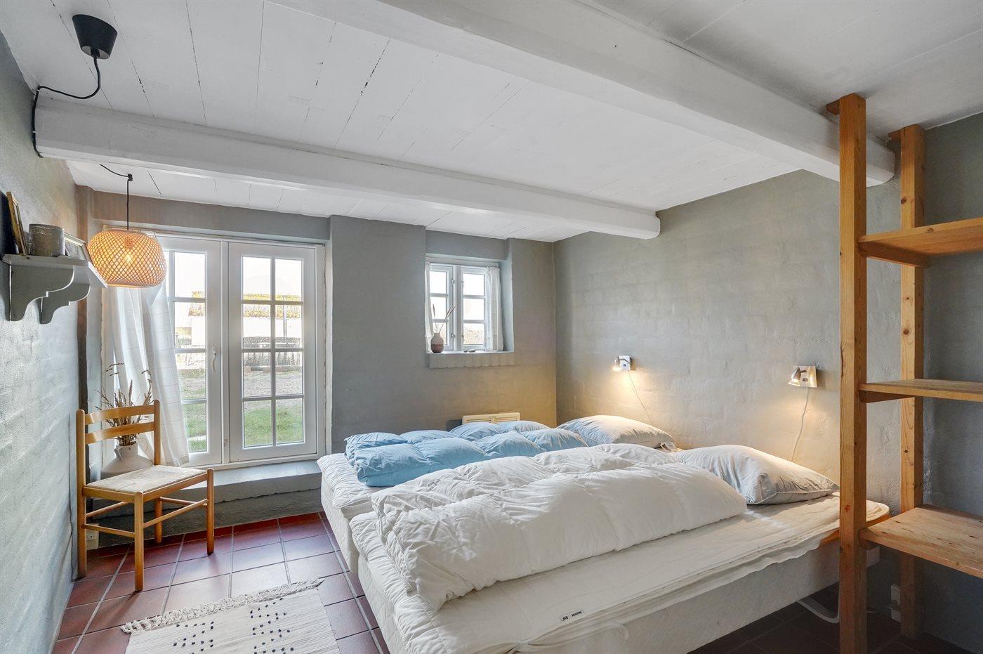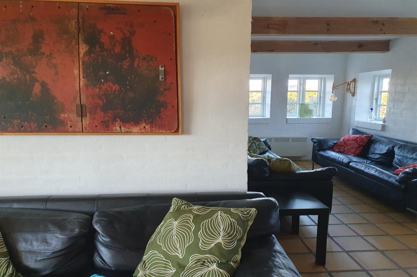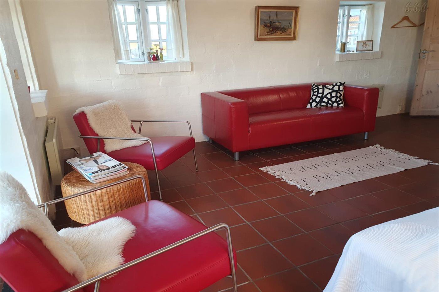 Anneksbygningen indeholder 10 sovepladser fordelt i 4 rum. Det største rum på 25 m2 egner sig fortrinligt til familier med børn som vil nyde at sove på den åbne hems, eller hele familien kan være samlet til fælles hygge sofagruppen. Desuden er der en entre og et badeværelse.