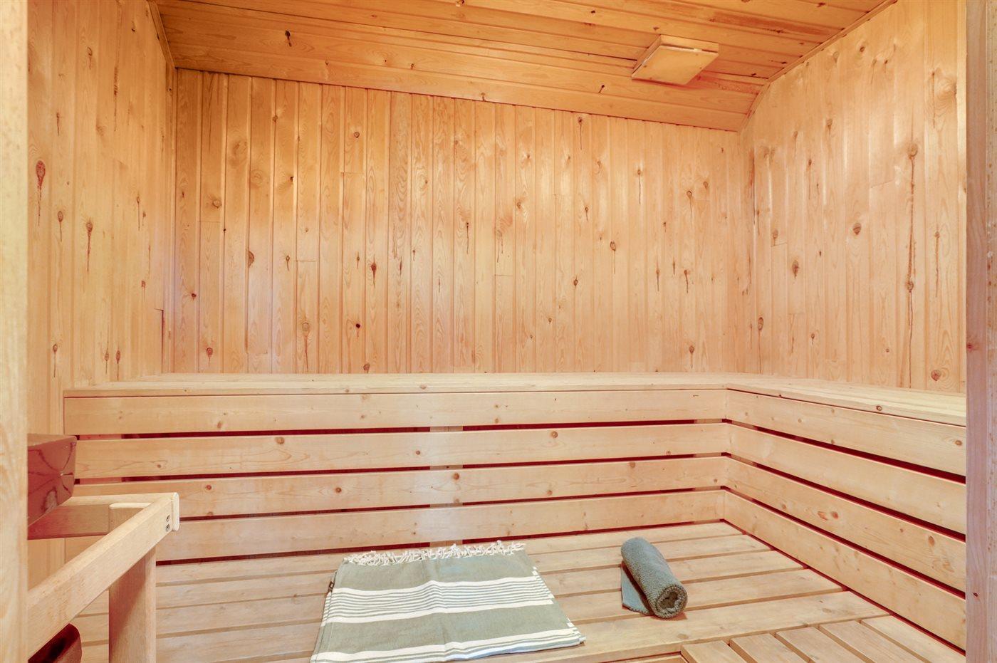 Udenfor er der mulighed for afslapning i det udendørs vildmarksbad til 6 personer eller nyde den friske luft fra en af terrasserne. Du kan også hygge med dine børn i sandkassen eller i det dobbelte gyngestativ.
