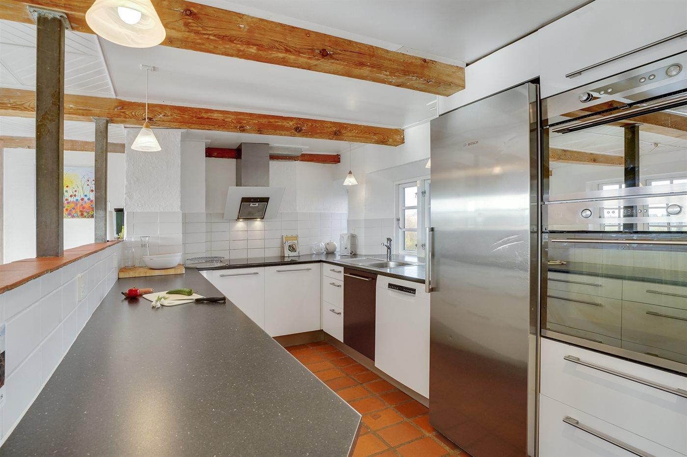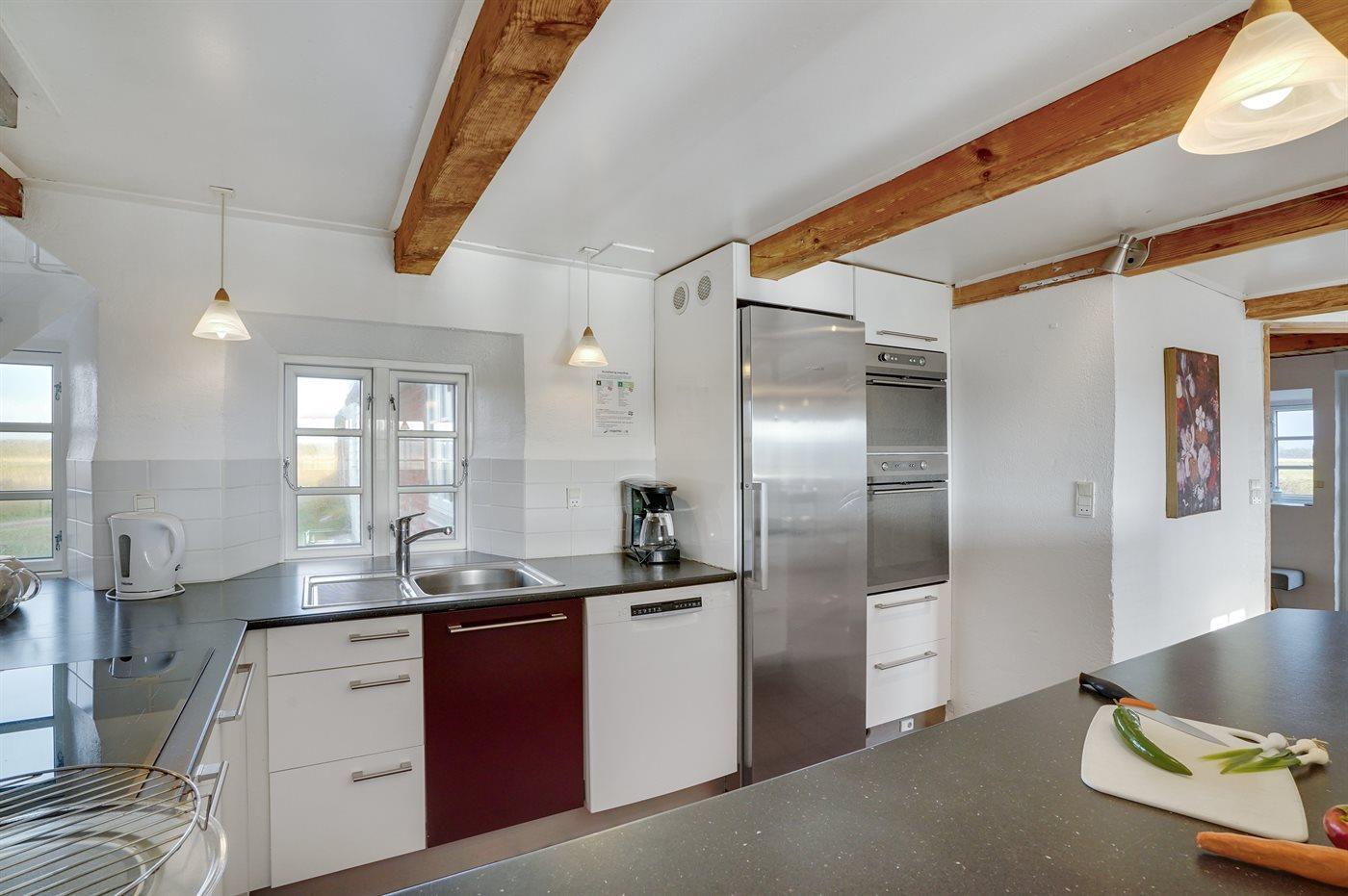 Køkkenet er udstyret med 1 stort køleskab, 4 keramiske kogeplader, varmluftovn, mikrobølgeovn samt opvaskemaskine. Der er gulvvarme i køkkenet.