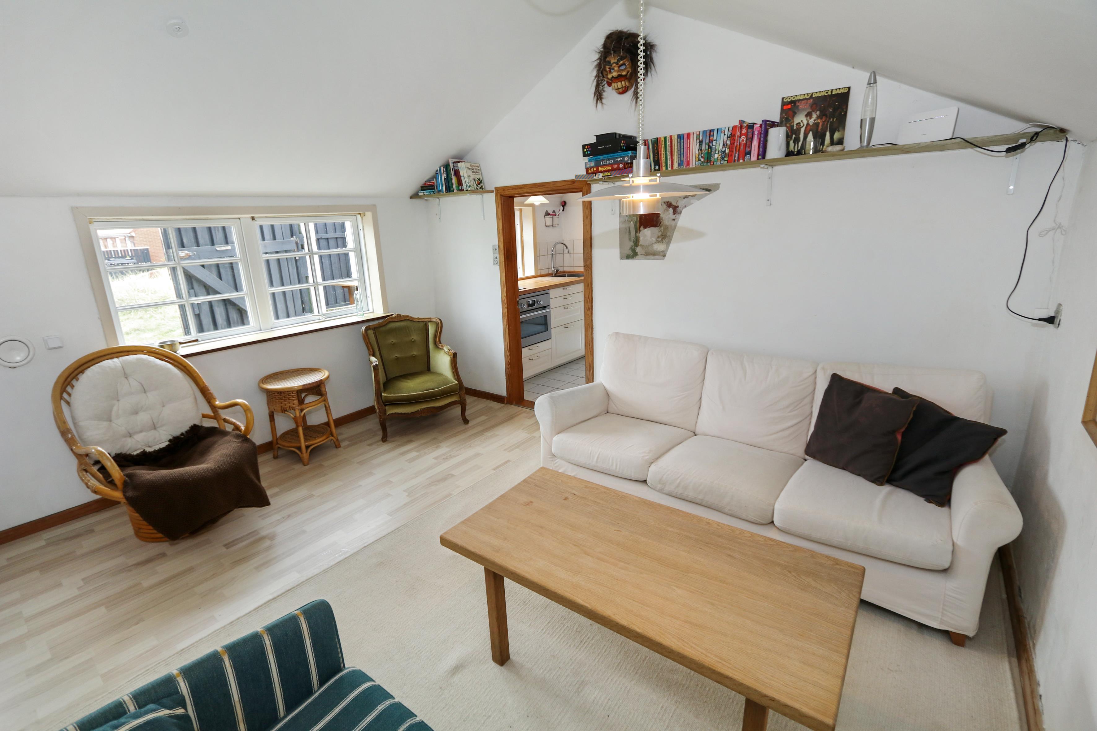 Gammel klitgård med 2 soverum (1DS, 1DS). Flot nyrenoveret badeværelse med bruser, toilet, håndvask og klinkegulv. Hyggelig opholdsstue med trægulv, og ældre polstermøbler. TV med danske og tyske programmer, og varmeapparater til de kolde aftener. Nyt køkken med klinkegulv, spiseplads, omduktions kogeplader, emhætte, kombiovn og køleskab med lille fryseboks. Ikke ryger hus. 2 husdyr tilladt.