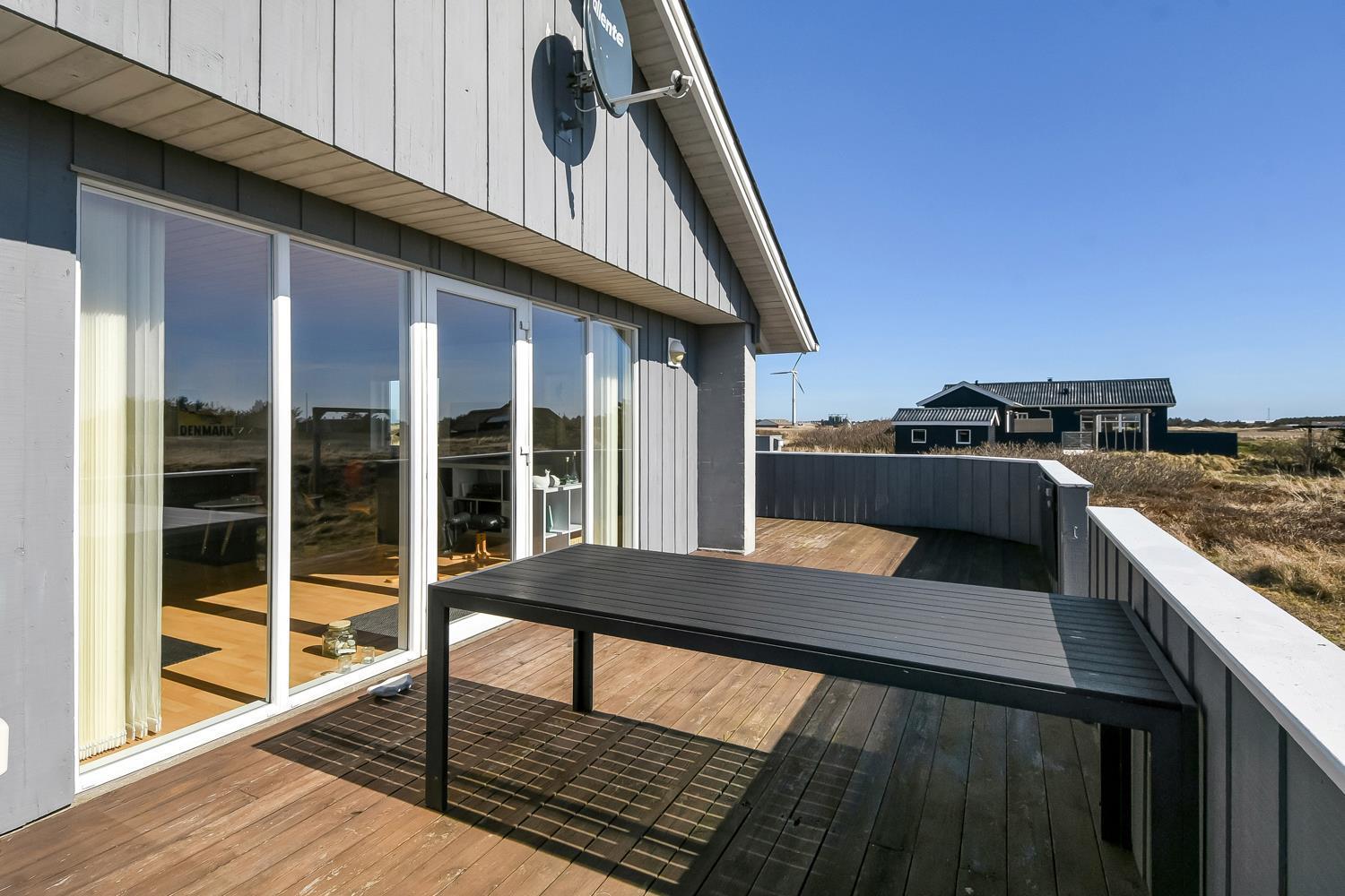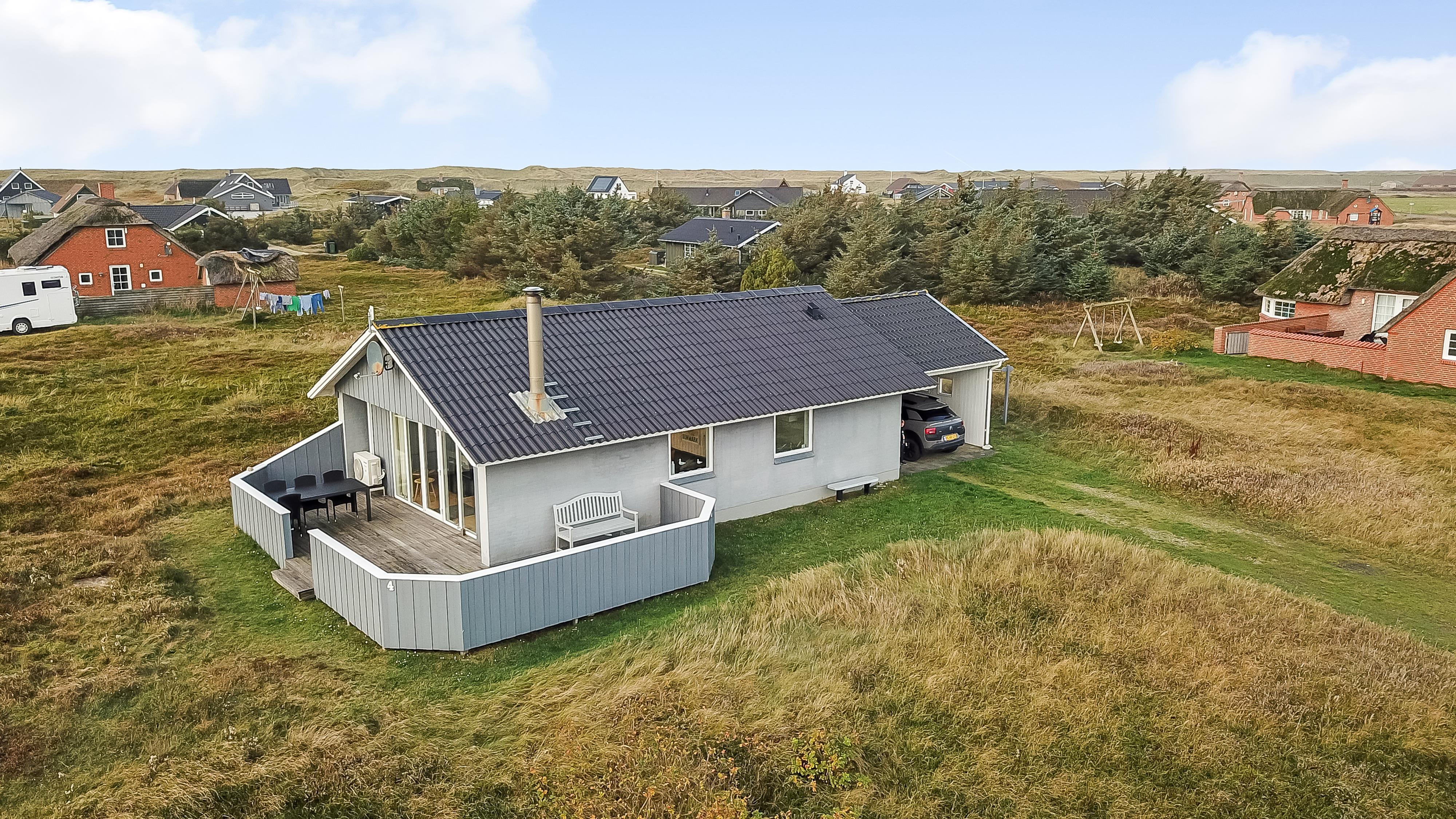 Fra opholdsstuen er der udgang til en dejlig indhegnet terrasse med havemøbler, liggestole og grill. Carport og ekstra opbevaringsrum. Gynge til børnene. Et rigtig godt sommerhus med den perfekte beliggenhed på en dejlig naturgrund tæt på det unikke Vesterhav som er et dagligt besøg værd både på solrige- som på blæsende dage. Hop ind i bilen eller tag cyklen og hent morgenbrød til familien i hos de nærved liggende supermarkeder. Så hvad enten du er til aktiv ferie eller total afslapning, danner dette feriehus en dejlig ramme både hvad angår hus, beliggenhed og omgivelser.