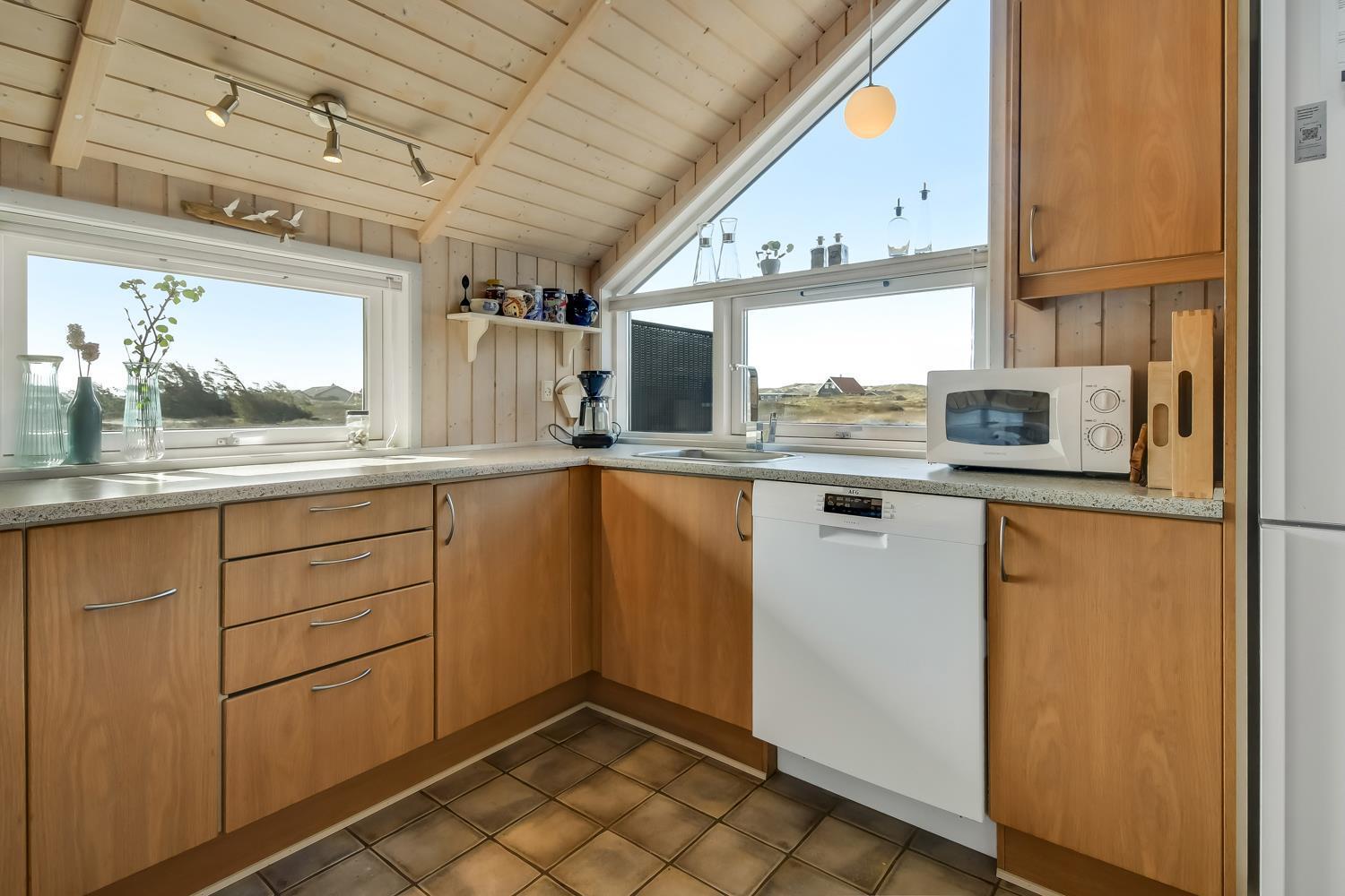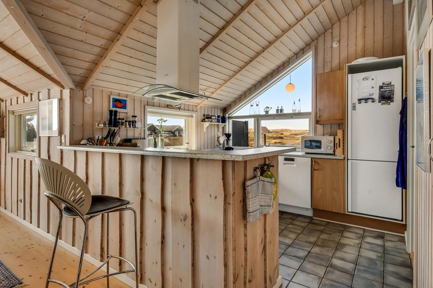 Huset er særdeles veludstyret og perfekt indrettet til både afslapning og praktisk funktionalitet. Det velindrettede køkken er udstyret med moderne apparater såsom mikroovn, airfryer, opvaskemaskine og en lille fryser – alt, hvad du behøver for at tilberede lækre måltider under dit ophold. Køkkenet er åbent mod den rummelige stue, hvilket skaber en åben og social atmosfære. Stuen er møbleret med moderne og komfortable møbler, der gør det til et perfekt sted at slappe af, efter en dag med aktiviteter.
