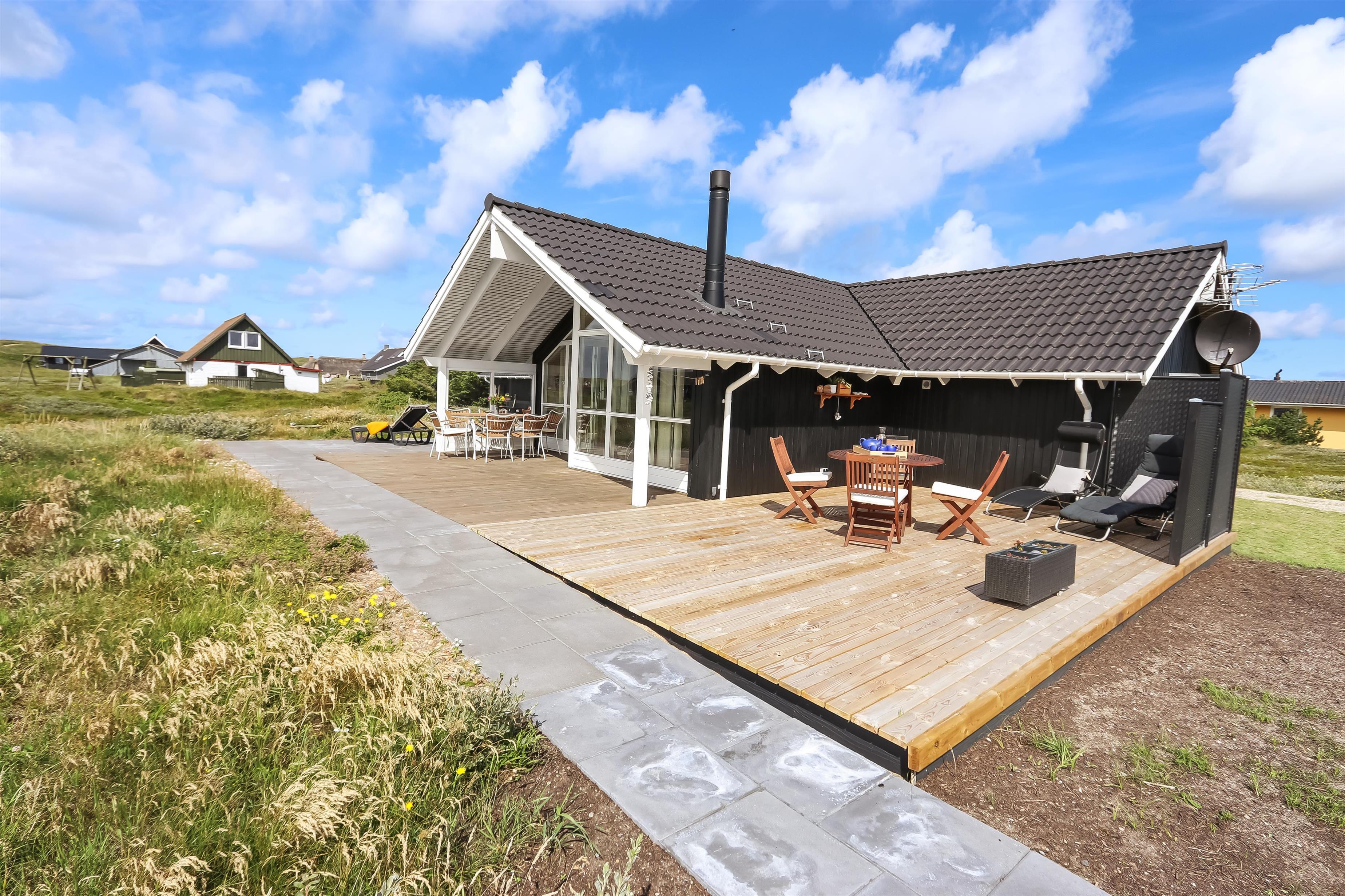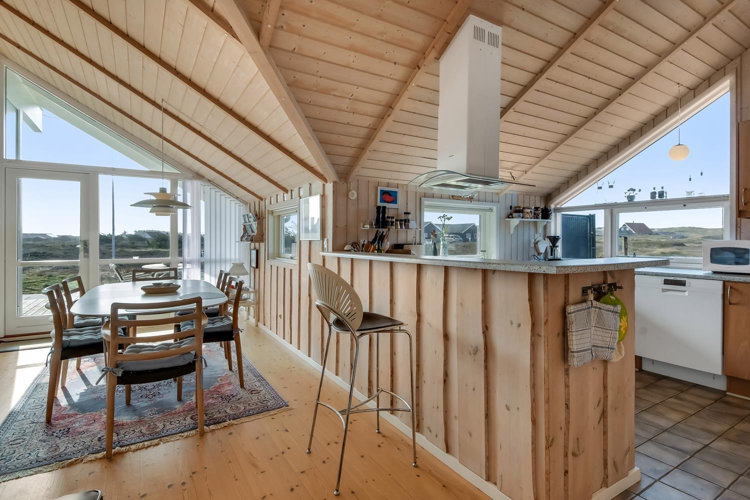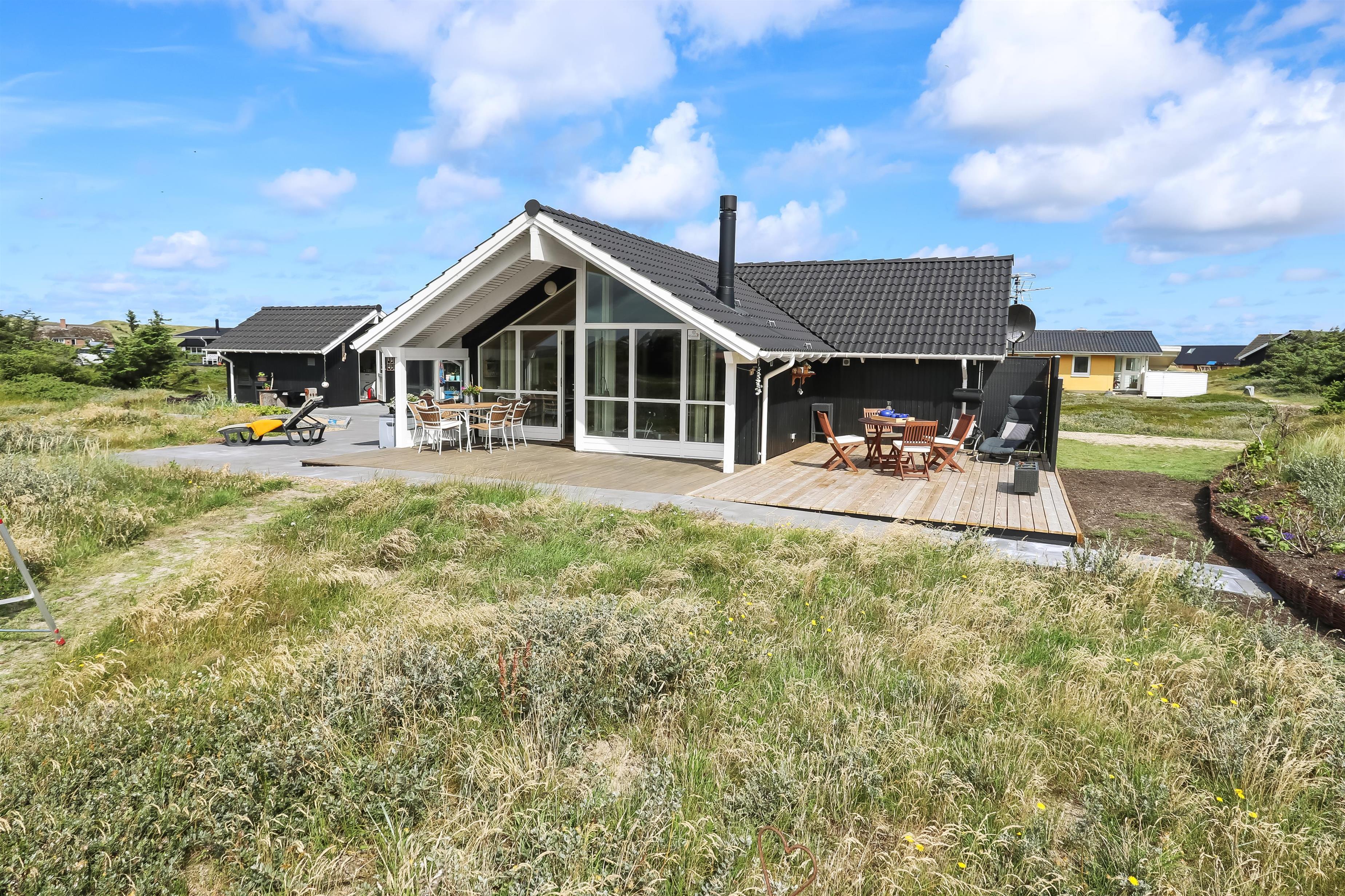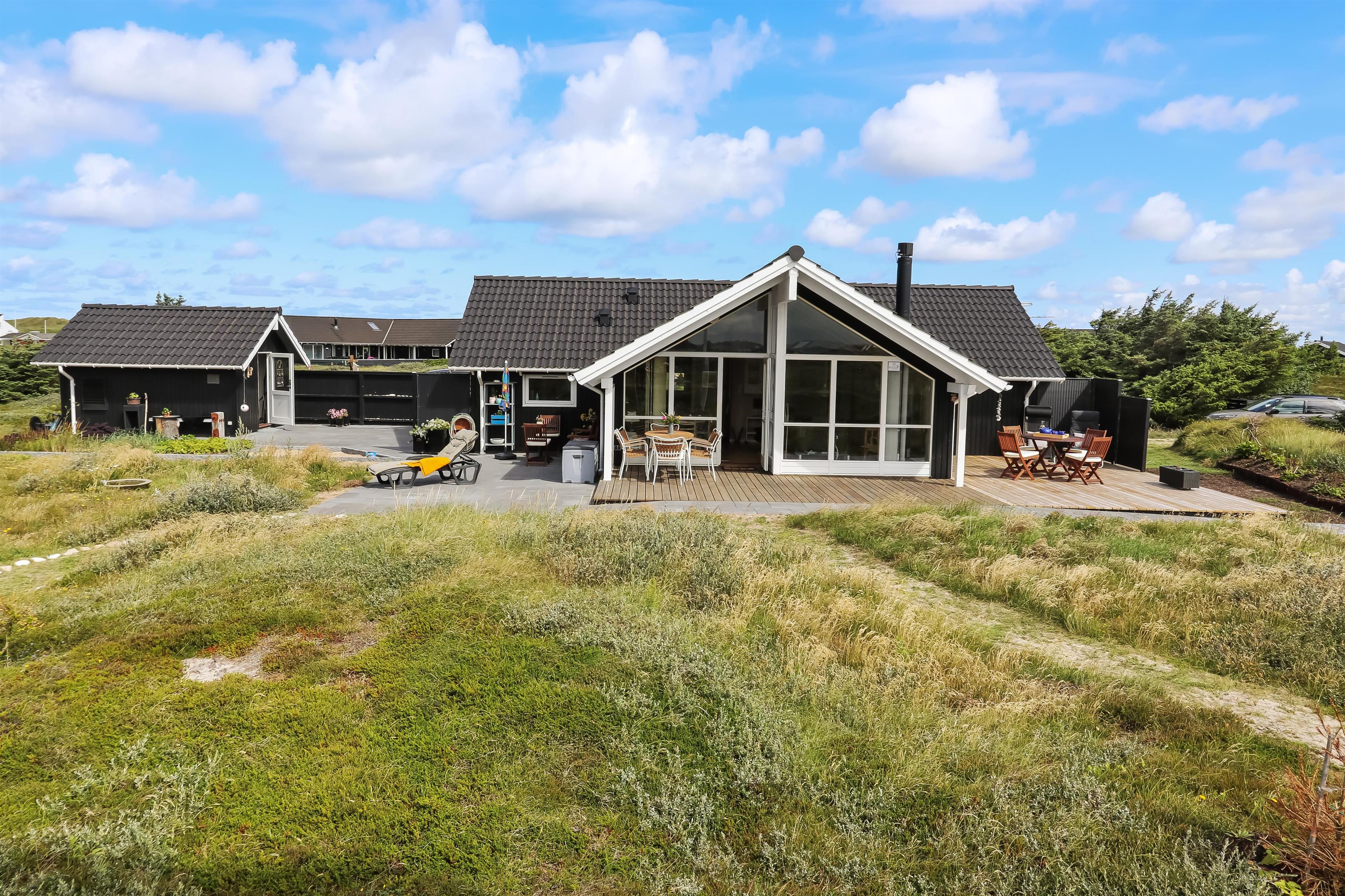 Dette flotte og indbydende sommerhus ligger ideelt placeret på en naturskøn skov- og naturgrund, kun 200 meter fra det imponerende Vesterhav og blot 1000 meter fra den nærmeste købmand. Huset er bygget i 2004 og fremstår lyst og venligt med store vinduespartier, som giver en fantastisk udsigt over de omkringliggende naturskønne områder. Den åbne og luftige atmosfære, skabt af de store vinduer og de lyse materialer, giver en følelse af både rummelighed og hygge.