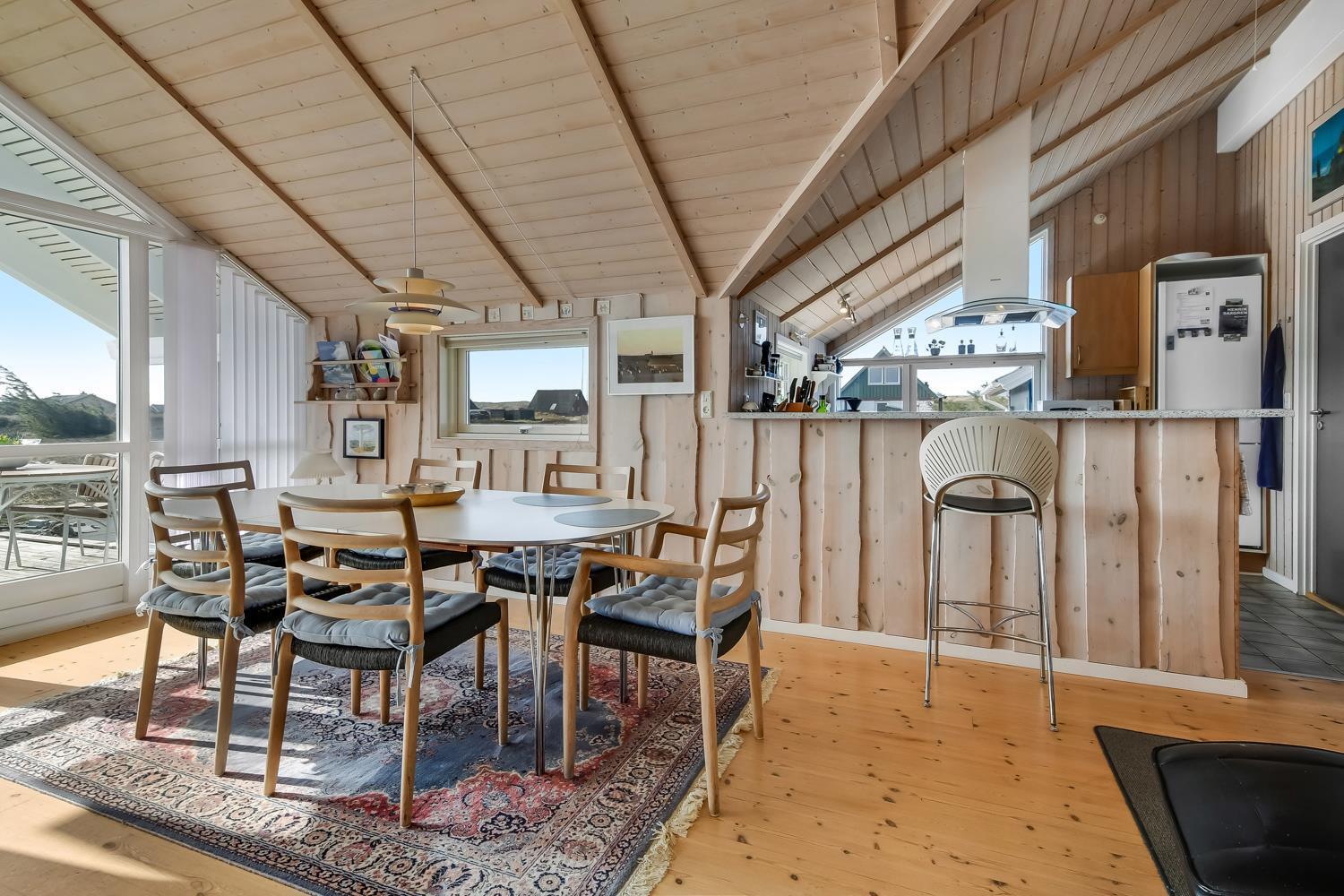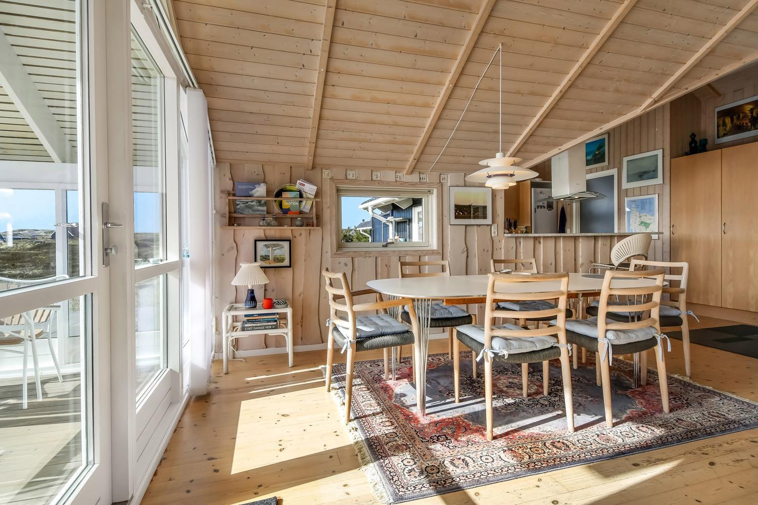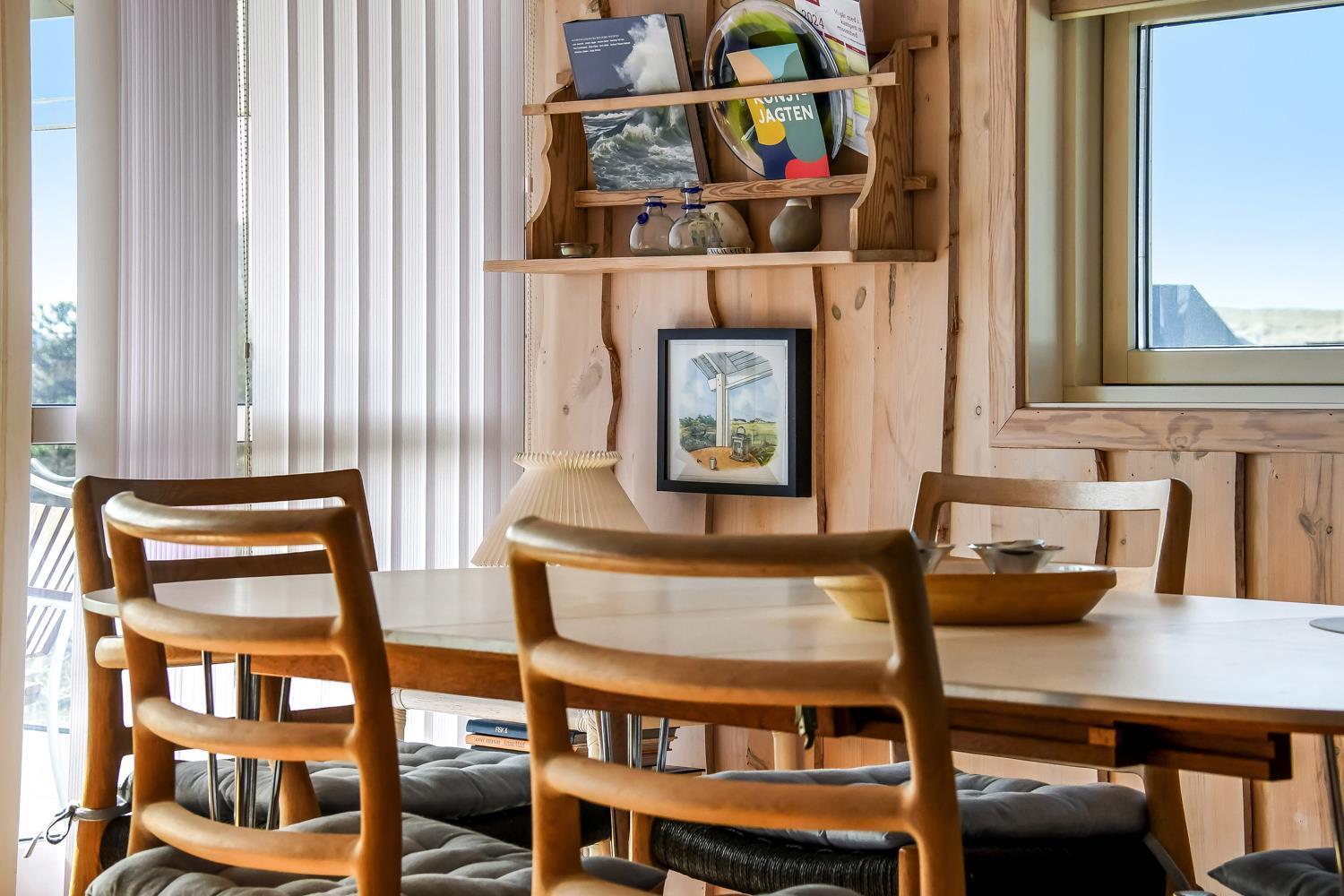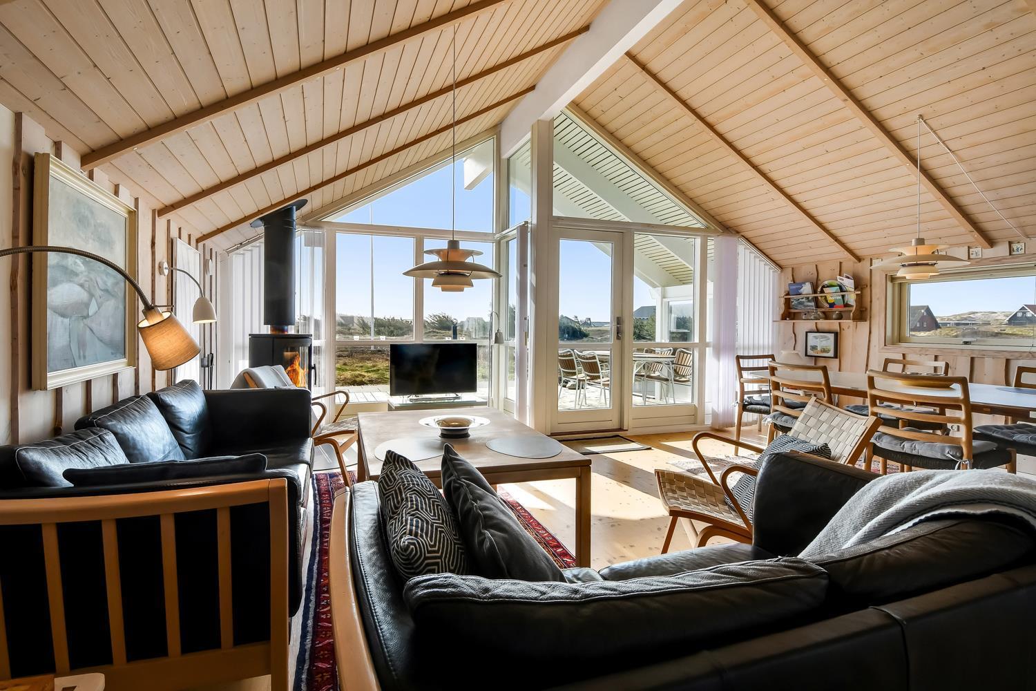 Dette flotte og indbydende sommerhus ligger ideelt placeret på en naturskøn skov- og naturgrund, kun 200 meter fra det imponerende Vesterhav og blot 1000 meter fra den nærmeste købmand. Huset er bygget i 2004 og fremstår lyst og venligt med store vinduespartier, som giver en fantastisk udsigt over de omkringliggende naturskønne områder. Den åbne og luftige atmosfære, skabt af de store vinduer og de lyse materialer, giver en følelse af både rummelighed og hygge.