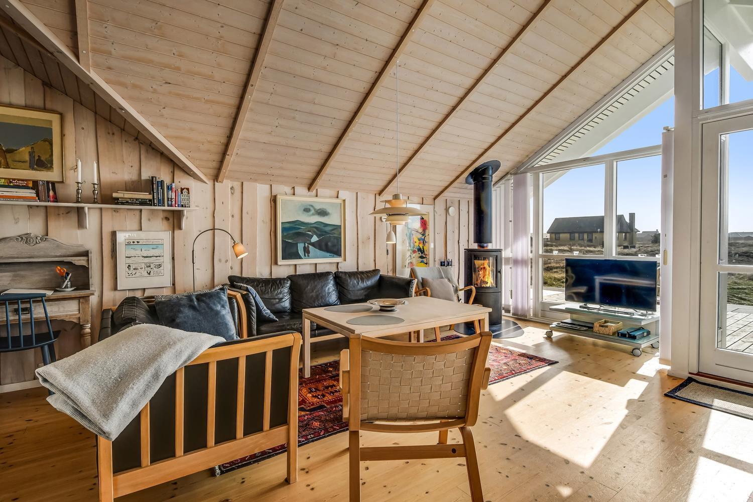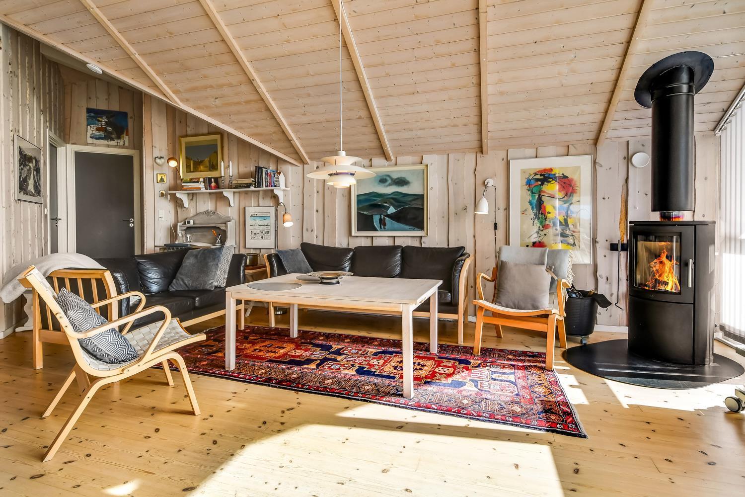 Der er desuden et stereoanlæg med radio og CD, en DVD-afspiller, samt TV med DR-kanaler og TV2, så du kan følge med i dine yndlingsprogrammer. Huset er udstyret med både varmepumpe og brændeovn, som giver mulighed for at skabe den perfekte temperatur året rundt, og sikrer en hyggelig atmosfære på de køligere dage.