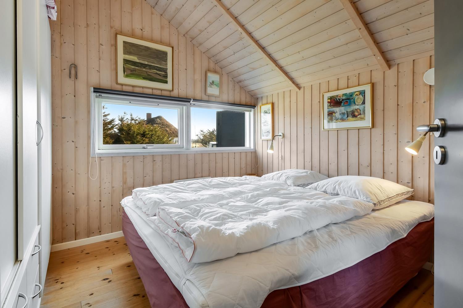 Sommerhuset tilbyder tre soveværelser, der sikrer god plads til hele familien: Et værelse med en dobbeltseng, et værelse med en anden dobbeltseng og et værelse med to enkeltsenge. Huset har desuden en barnestol samt en 2-i-1 vaskemaskine og tørretumbler, så du nemt kan vaske og tørre tøj under dit ophold.