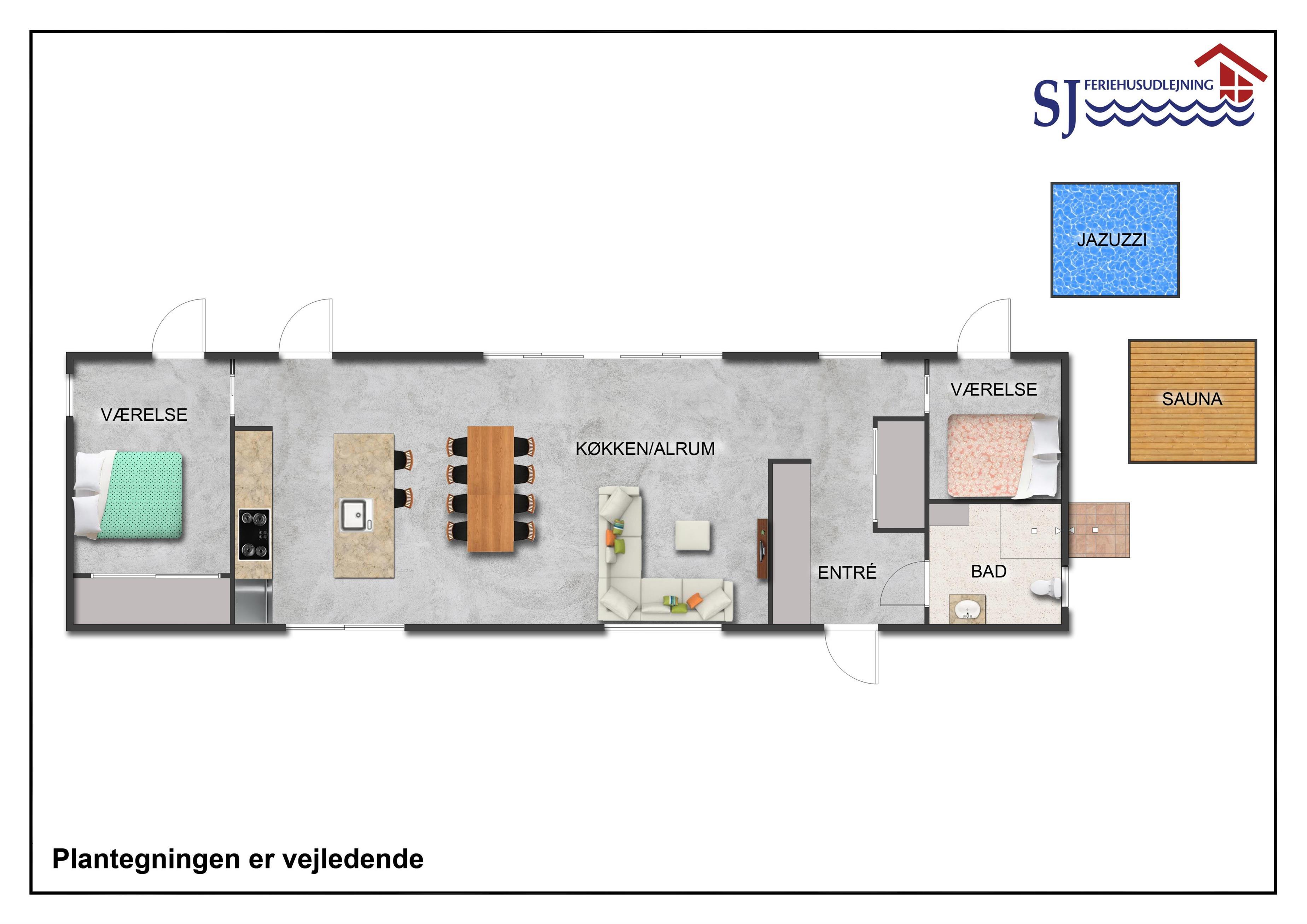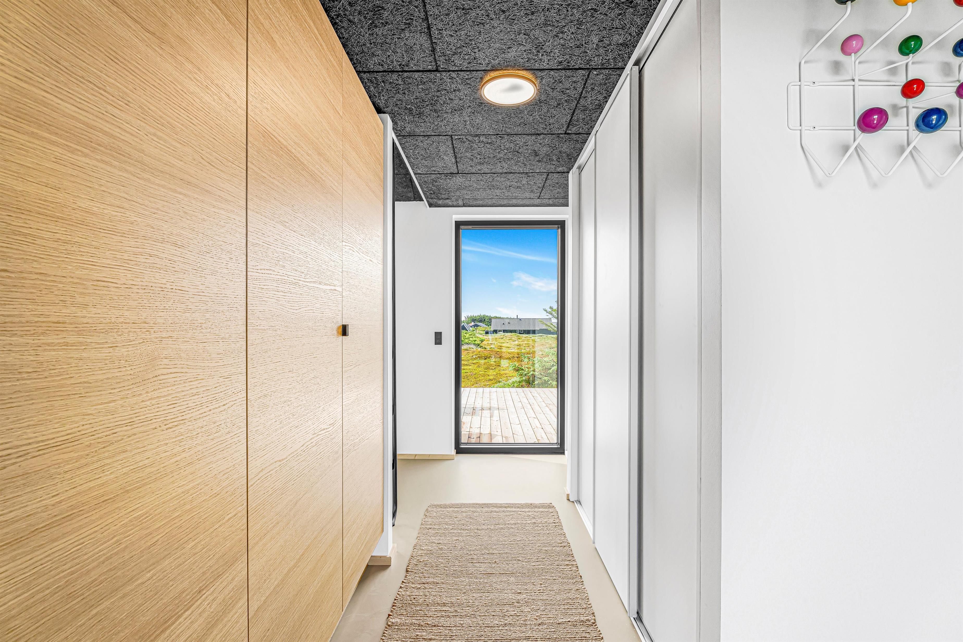 Feriehuset er 80 m2 stort og er veludnyttet og fremstår meget rummeligt. En dejlig entré byder velkommen og giver plads til sko og jakker. Her forefindes også vaskemaskine og tørretumbler.