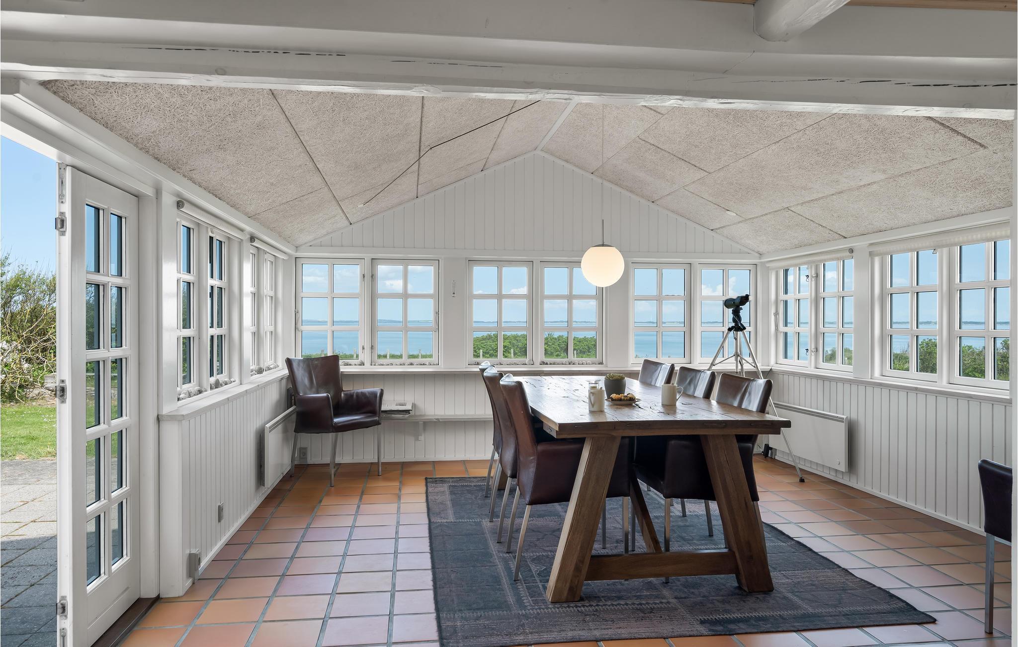 Rummeligt feriehus ved Nissum Strand med panoramaudsigt over Limfjorden og egen strand tæt på natur og aktiviteter.