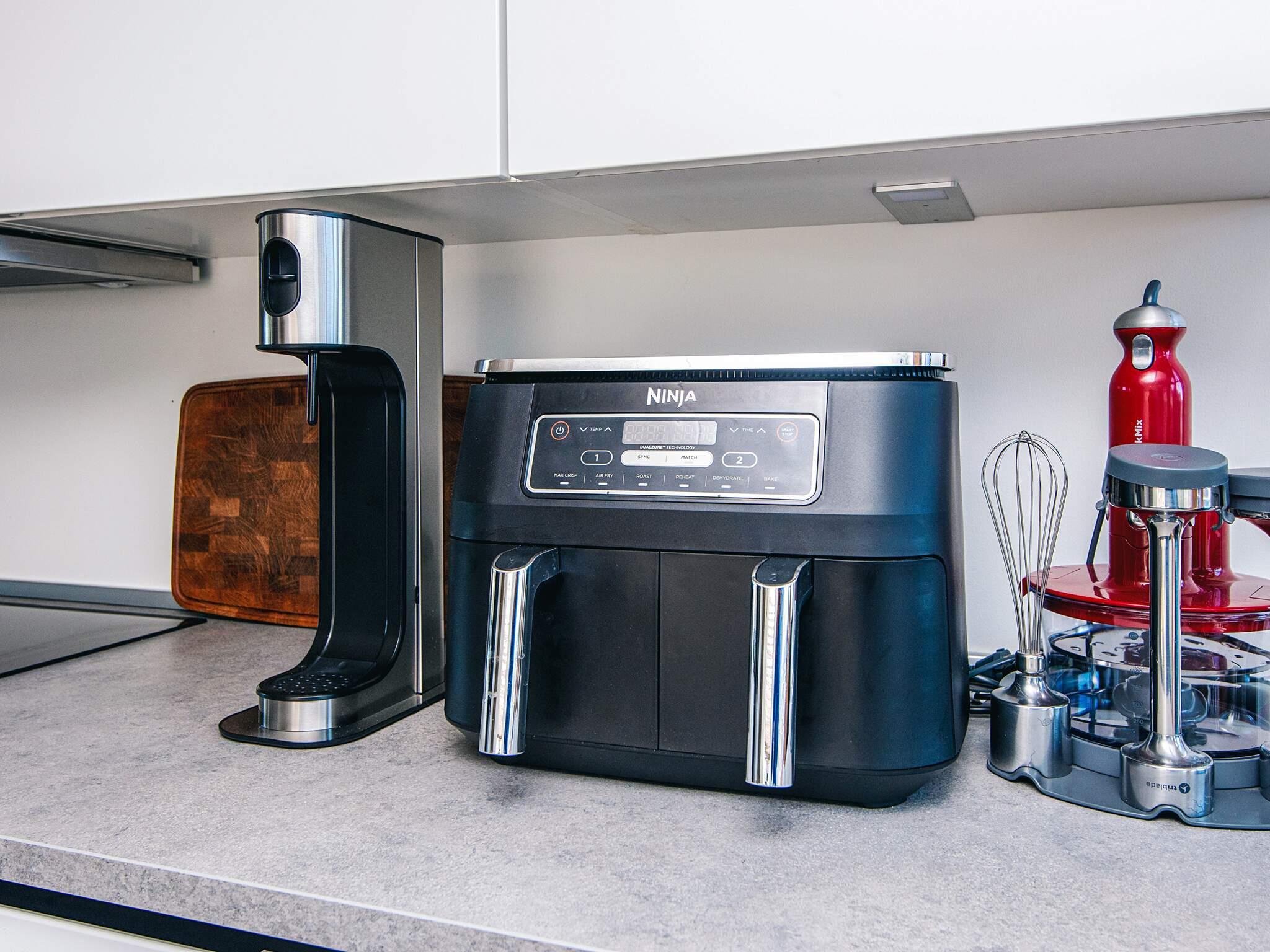 Køkken: El-komfur, køle-frys, mikroovn, kaffemaskine, opvaskemask., vaskemaskine
