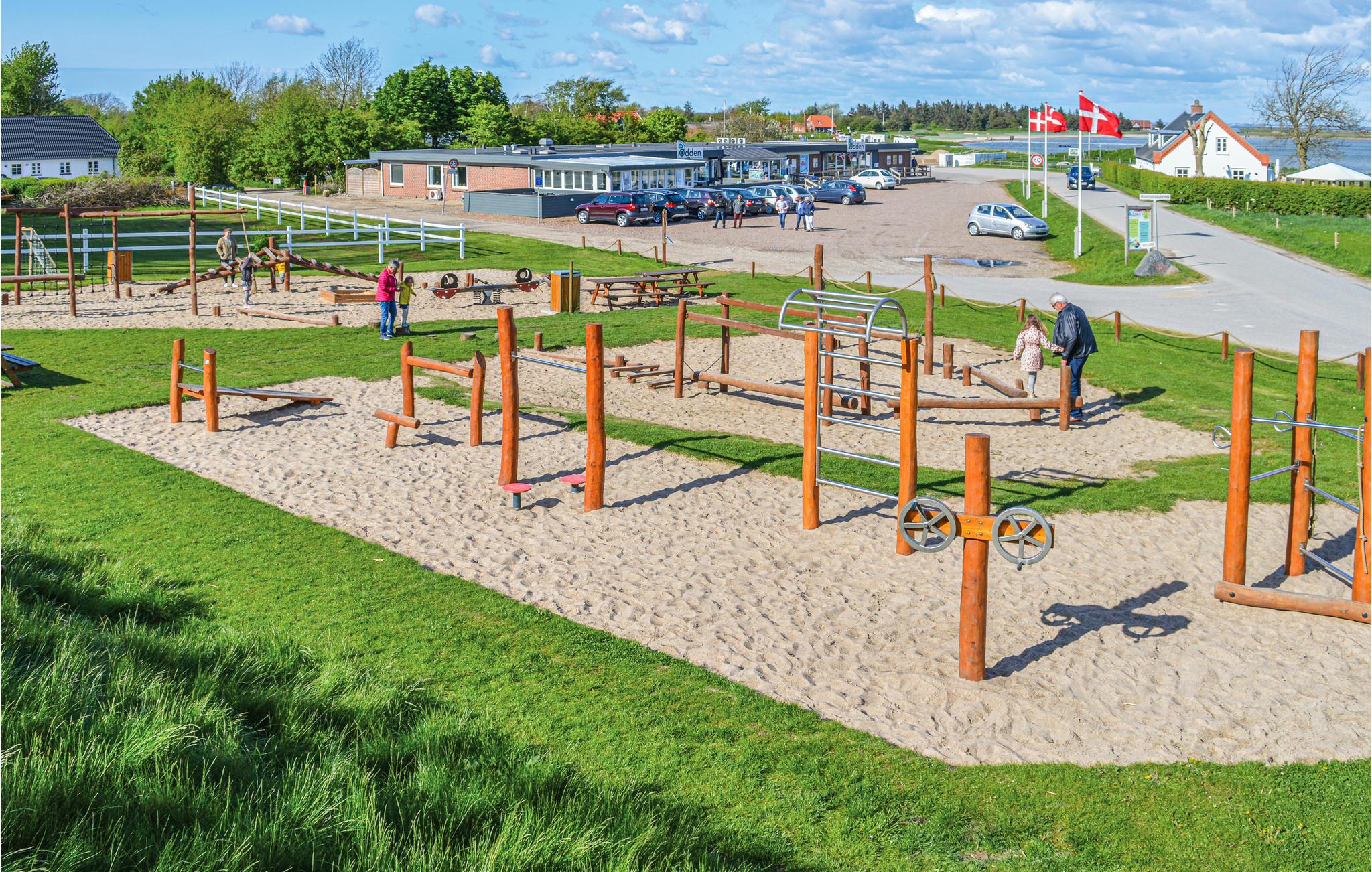 Ved lejligheden findes et fællesareal med borde og bænke samt en grill. Derudover er der gynge og sandkasse til feriens yngste gæster.