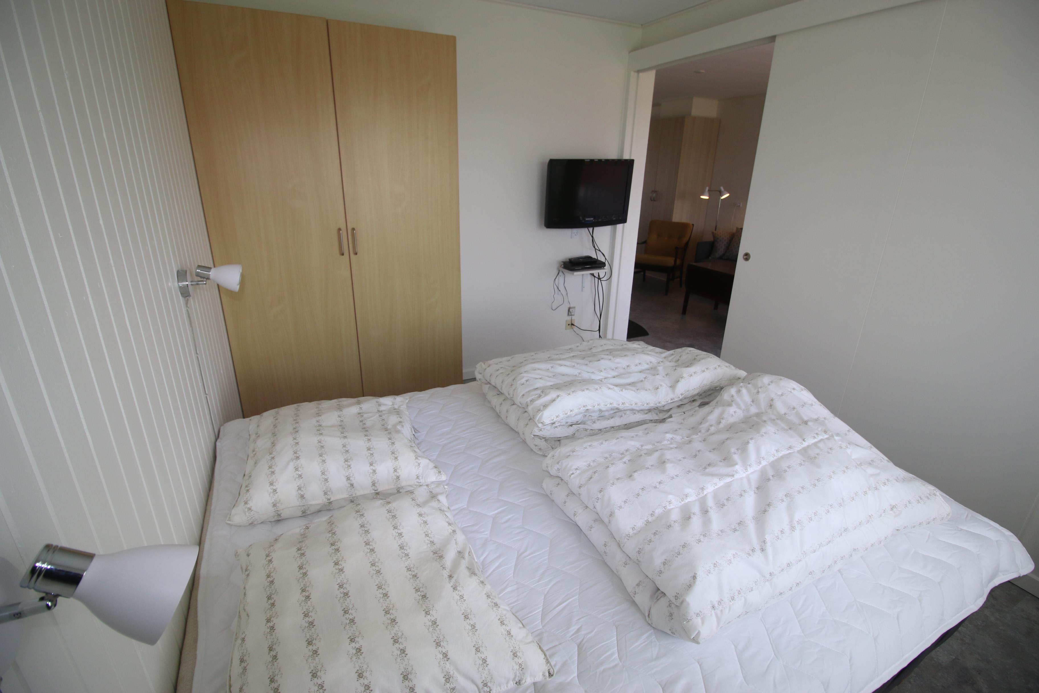 Der er et soveværelse med dobbeltseng samt 2 liggemuligheder i stuen. Badeværelset har bruser, håndvask og toilet. Har man el-bil eller en Plug-In hybrid, så er der 4 Ladebokse til Type 2 ladestik, der kan lade op til 11 kWh ved Feriecenteret - de er lige efter miljøstationen.