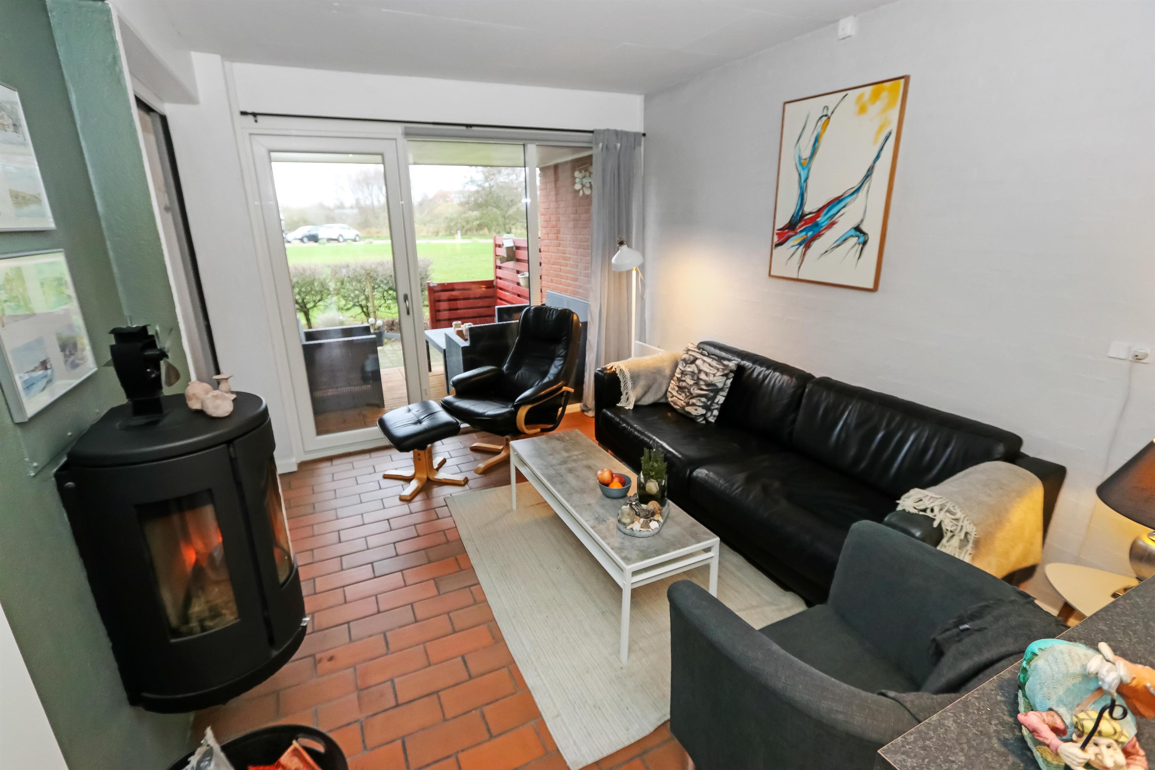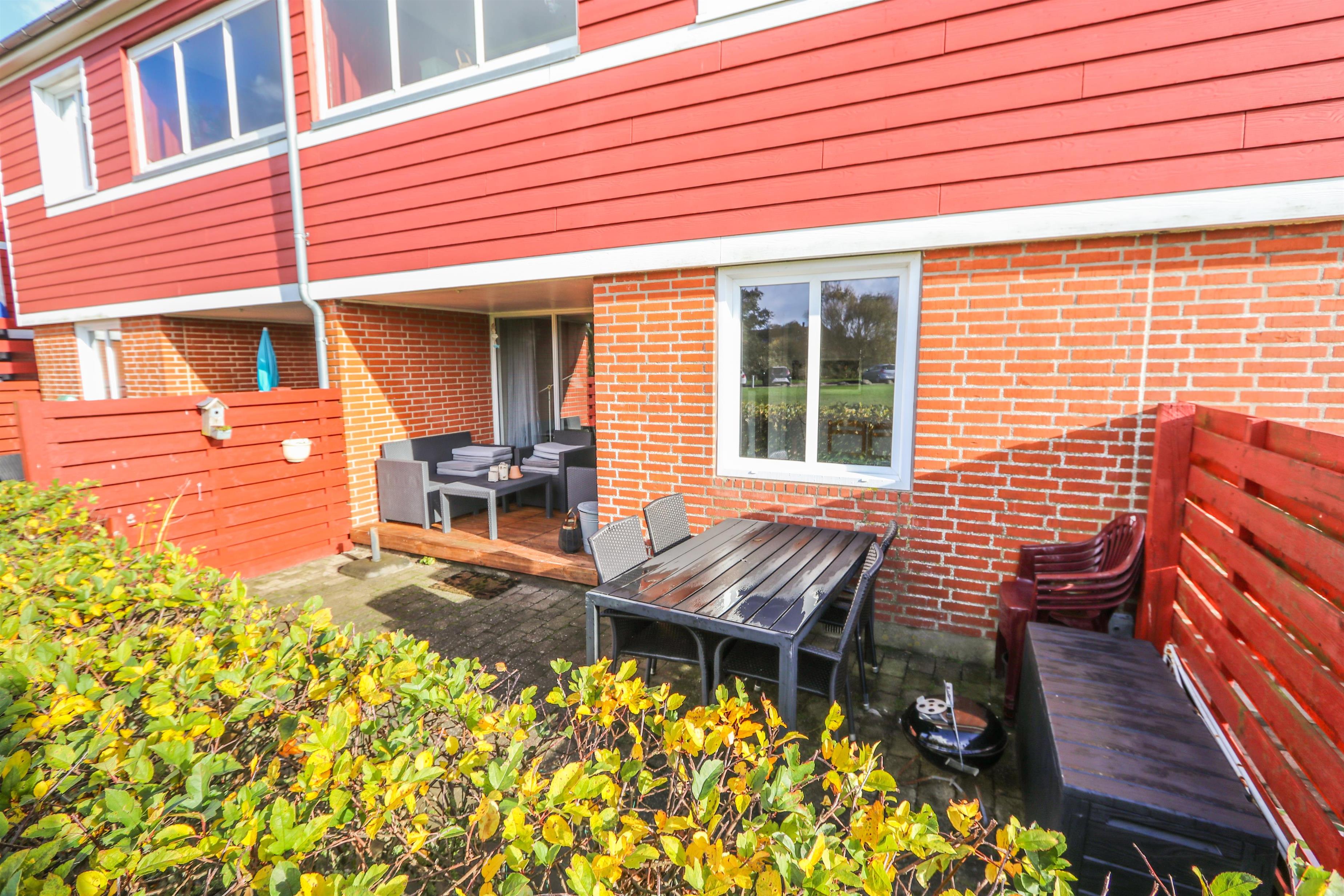 Lejligheden har 2 terrasser med tilhørende havemøbler og der er også en grill. Lemvig Feriecenter er et roligt område og dog stadig kun 1500 meter fra Lemvig hvor man kan spadsere og gå på indkøb eller nyde stemningen ved havnen. På selve feriecenteret er der masser af faciliteter der er listet op nedenfor. Spiller du golf ligger Lemvigs 18 hullers golfbane kun 1500 meter fra lejligheden og 8 km væk ligger Danmarks længste mountainbikerute i Klosterheden. Så selv om vejret er lunefuldt går du ikke fejl af en ferie her.