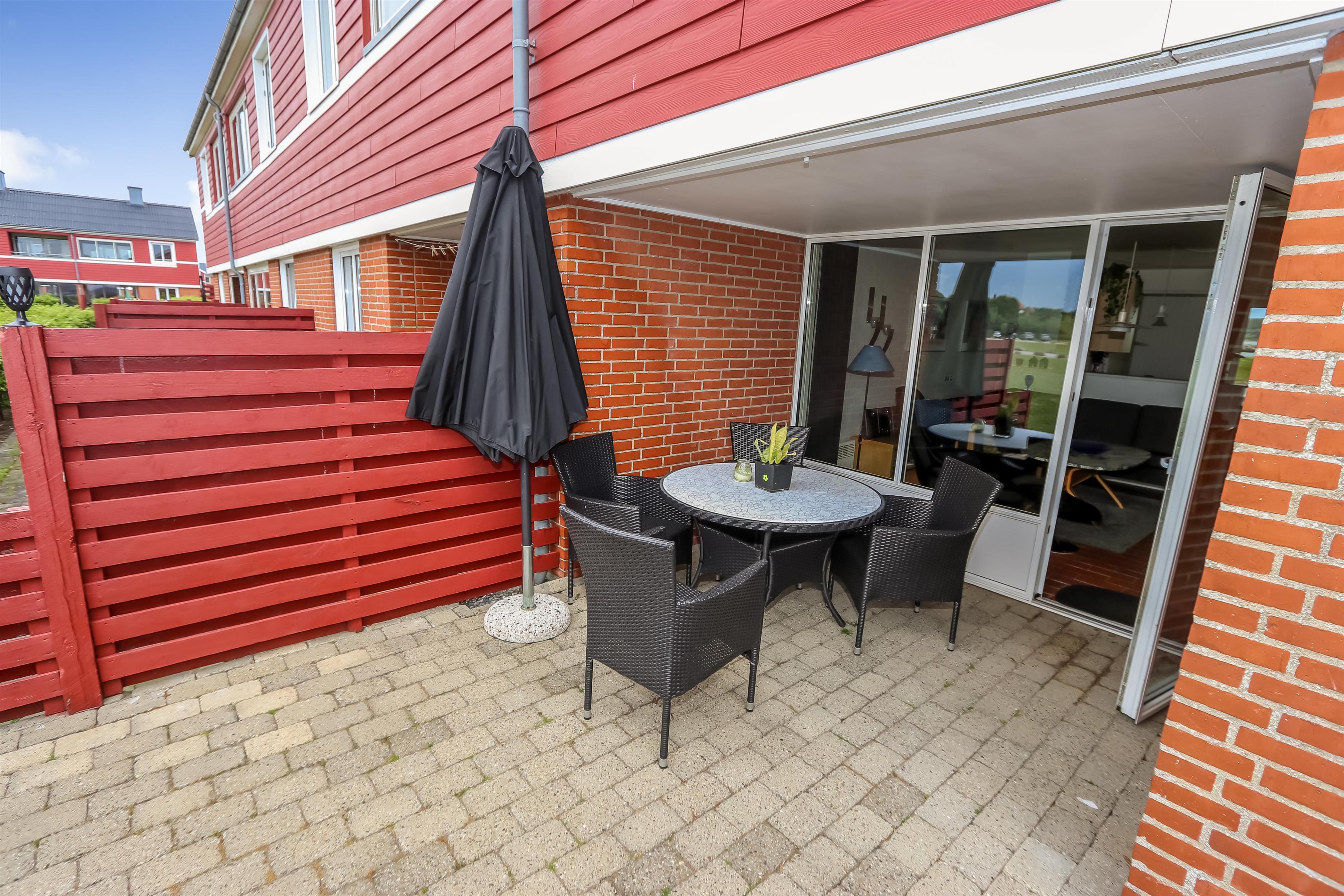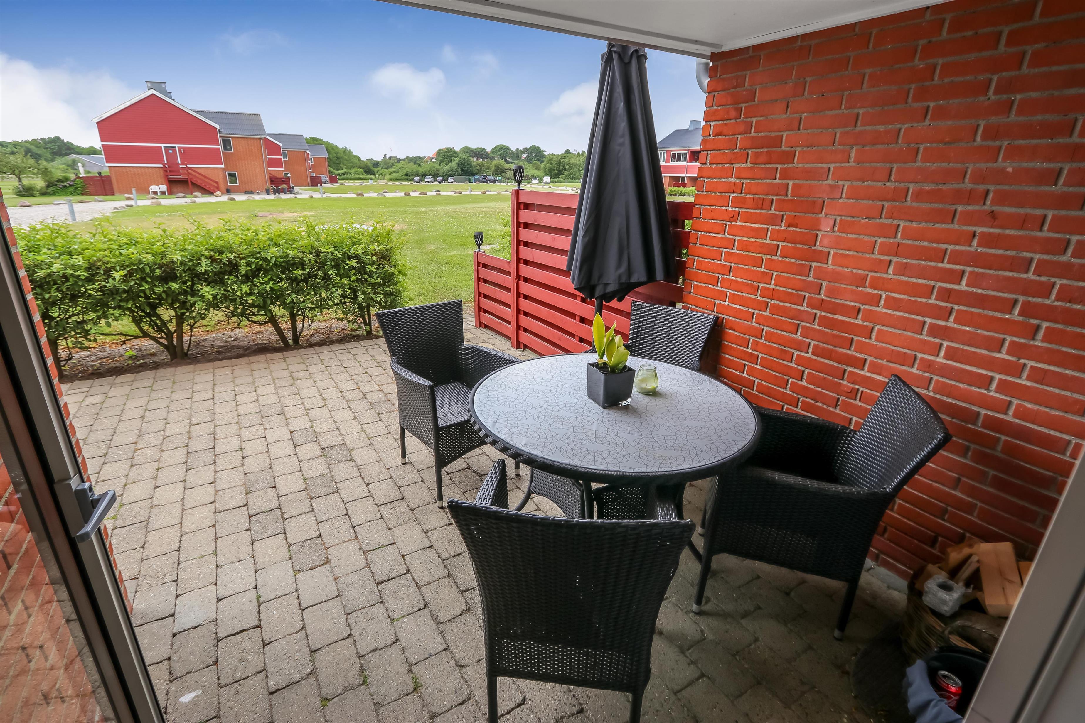 Her er to terrasser. Den ene mod Limfjorden samt marinaen og den anden er sydvestvendt med direkte adgang fra stuen. Lemvig Feriecenter er et roligt område og dog stadig kun 1500 meter fra Lemvig hvor man kan spadsere og gå på indkøb eller nyde stemningen ved havnen. På selve feriecenteret er der masser af faciliteter der er listet op nedenfor. Spiller du golf ligger Lemvigs 18 hullers golfbane kun 1500 meter fra lejligheden og 8 km væk ligger Danmarks længste mountainbikerute i Klosterheden. Så selv om vejret er lunefuldt går du ikke fejl af en ferie her.