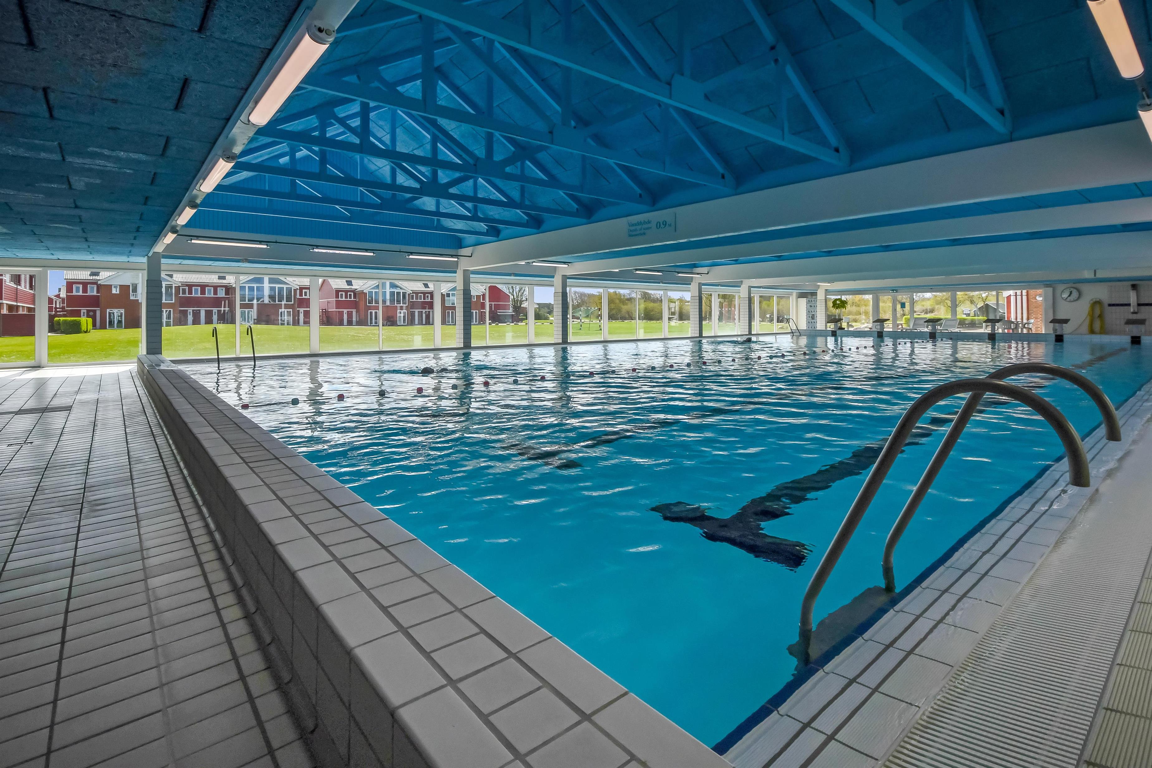 Har man lyst til at bade, når vejret ikke lige er solrigt, kan man tage i svømmehallen, der også byder på spabad og dampsauna.