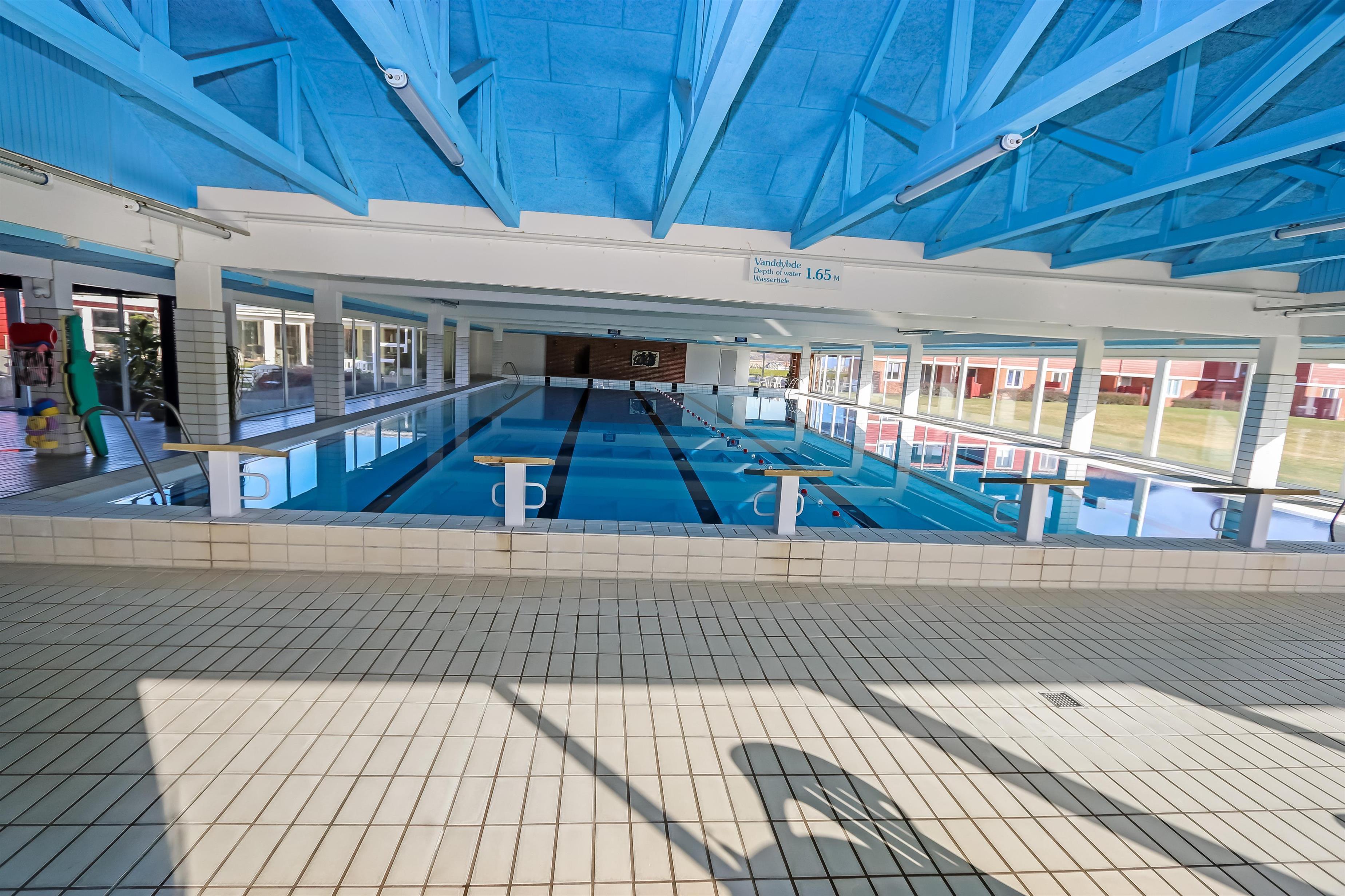 Har man lyst til at bade, når vejret ikke lige er solrigt, kan man tage i svømmehallen, der også byder på spabad og dampsauna.