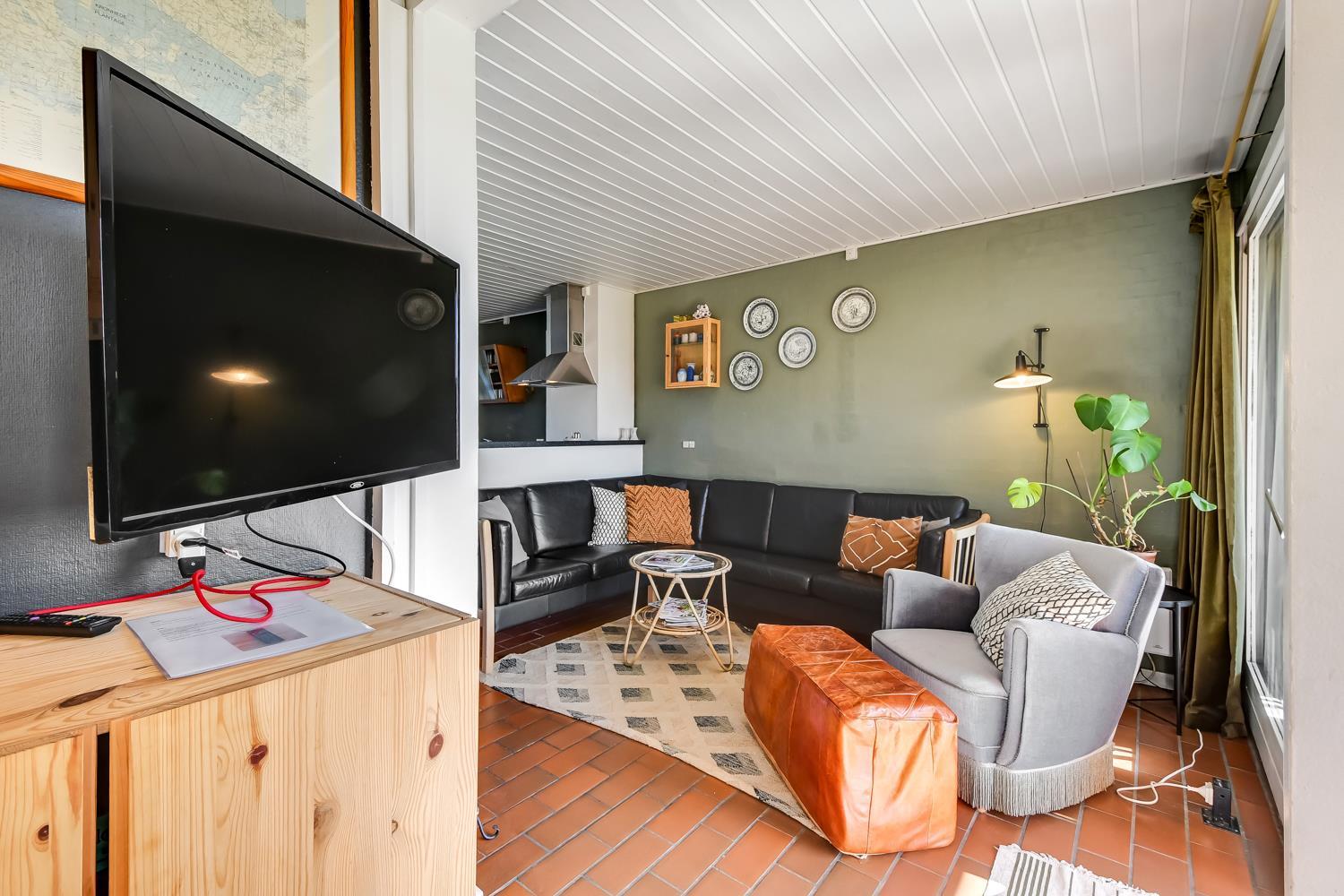 Lejligheden, som er beliggende i stueetagen, er hyggeligt indrettet. Opholdsstuen er med dansk og tysk tv (RTL og Eurosport1), pæne møbler, brændeovn. 2 soverum: (1DS) + (1K). Køkkenhjørne med spiseplads, komfur med glaskeramiske kogeplader, emhætte, opvaskemaskine,køleskab med lille fryseboks. Lille badeværelse med gulvvarme, toilet, håndvask og bruser. Klinkegulv i alle rum. Udgang til delvis overdækket terrasse med havemøbler. Har man el-bil eller en Plug-In hybrid, så er der 4 Ladebokse til Type 2 ladestik, der kan lade op til 11 kWh ved Feriecenteret - de er lige efter miljøstationen.