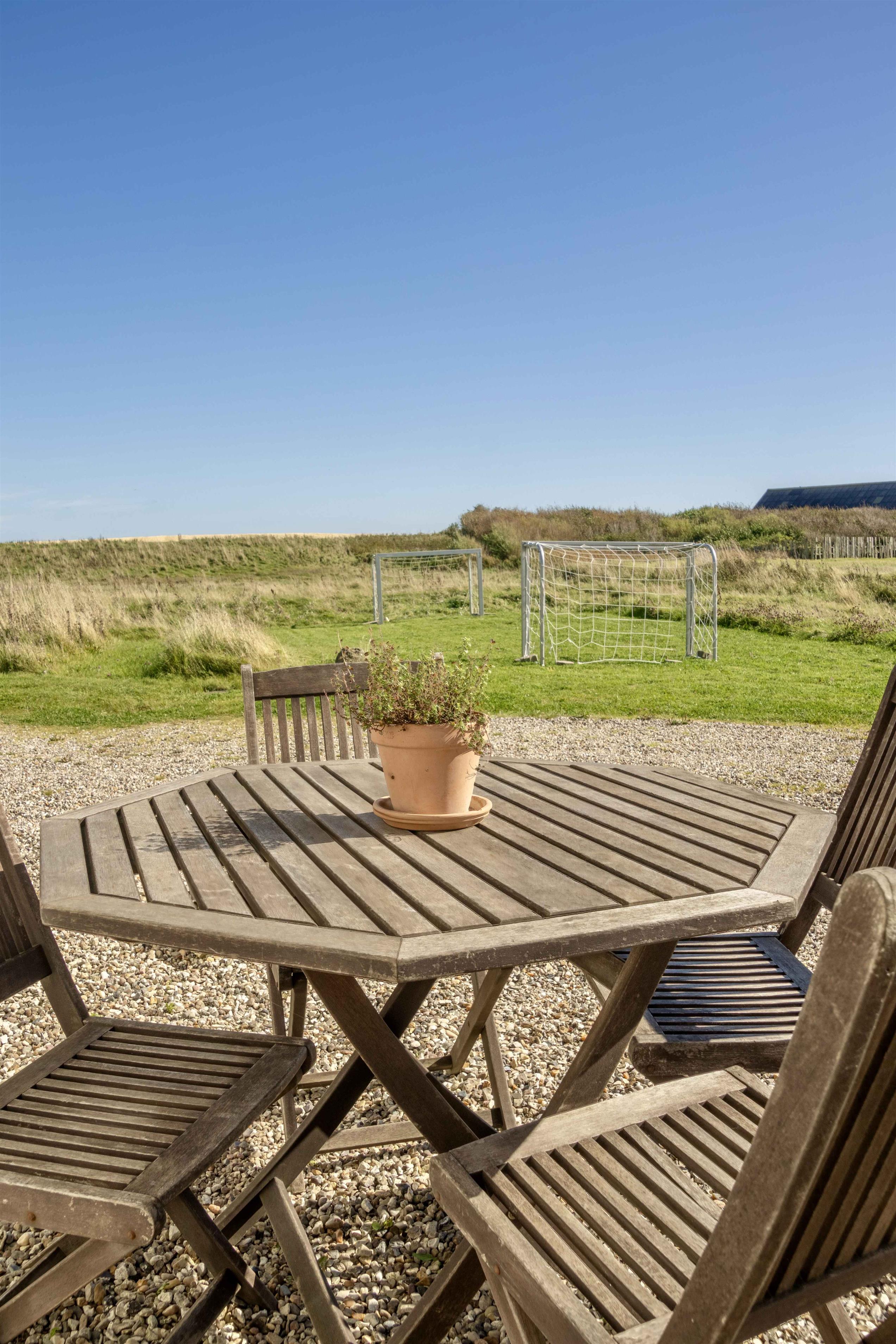 Velkommen til dette hyggelige sommerhus. Med 80 m² byder huset på afslapning og hygge for hele familien. Her er alt, hvad I behøver til en afslappende ferie. Sommerhuset har to soveværelser med komfortable senge, der sikrer en god nats søvn. Med plads til syv personer er huset ideelt til både små og store familier. Stuen er rummelig med plads til samvær og hygge. Med blot 450 meter til vandet kan I nyde stranden og de naturskønne omgivelser. Området er perfekt til lange gåture, cykling og vandsport. Der er mulighed for at opleve den storslåede natur og det rige dyreliv. Huset er udstyret med internet, så I kan holde forbindelsen, hvis det ønskes. Børnene kan boltre sig på trampolinen i haven. På terrassen kan I nyde måltider tilberedt på grillen og samles om brætspil på lange sommeraftener. Omgivelserne byder på en kombination af hav og klitlandskab, der indbyder til afslapning og fordybelse. Områdets charmerende byer med små butikker og hyggelige caféer ligger i kort afstand. Her kan I nyde lokal gastronomi og kultur. Naturen i området inviterer til udforskning og eventyr. Tag på opdagelse i de smukke nationalparker, eller besøg de historiske seværdigheder, der vidner om områdets rige kulturarv. Her venter en ferie fyldt med minder. OBS: Det er pt. ikke mulig at åbne terrassedøren, da den har sat sig fast. Tidspunkt for levering og udskiftning af dør er pt. ukendt. Obs, udlejes ikke til erhversmæssigt brug.