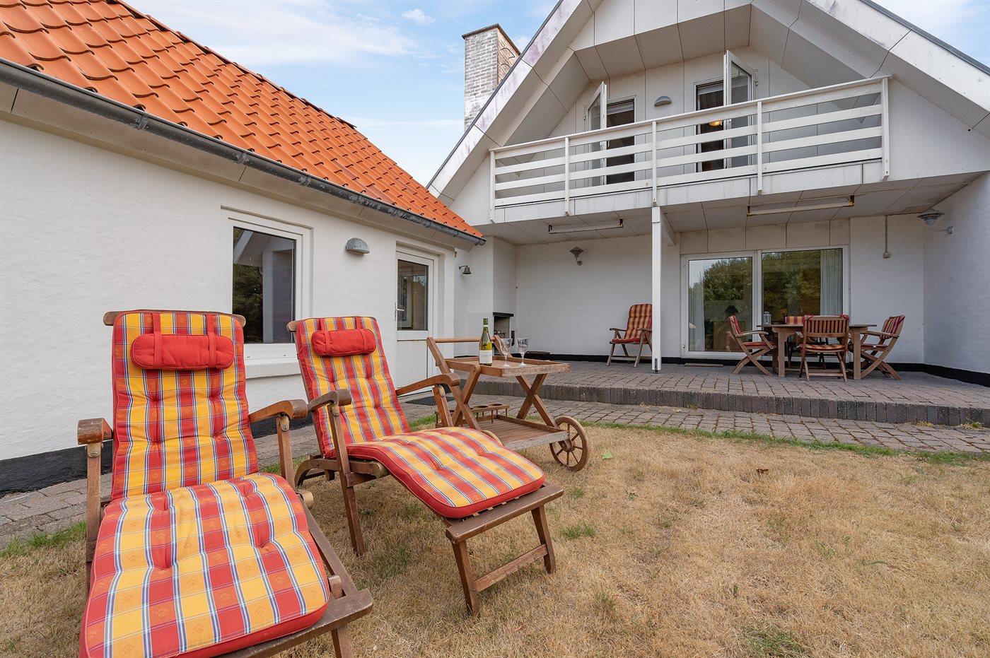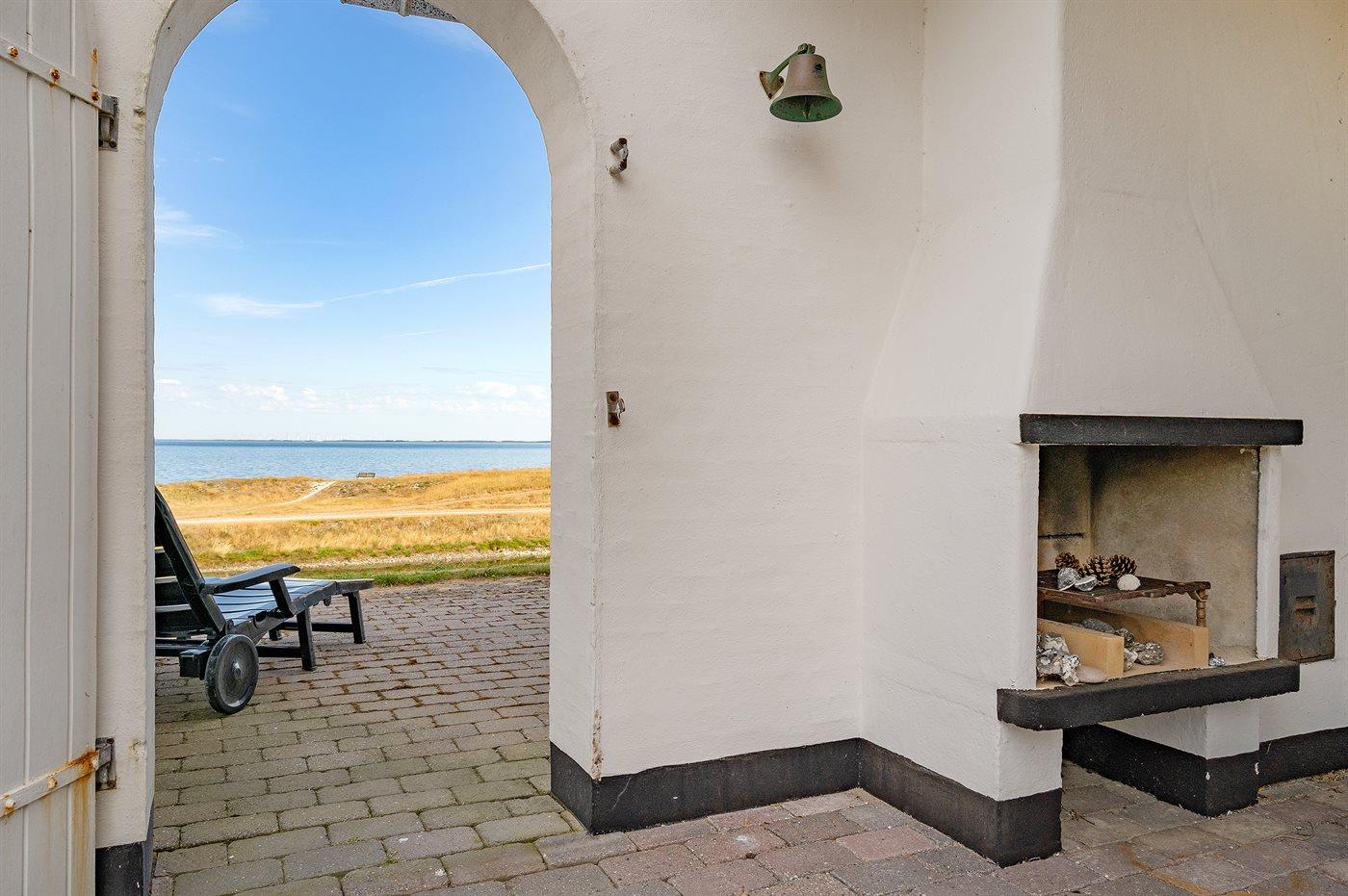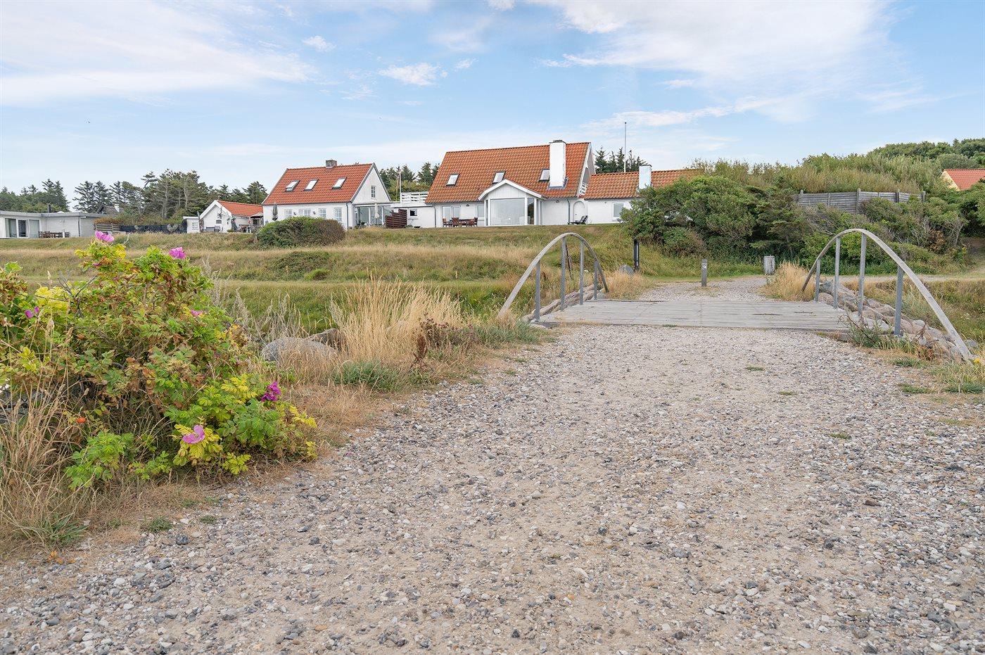 Ferieboligen er beliggende på en 1433 m² stor havegrund. Grunden er indhegnet. Der er 50 m til fjorden. Nærmeste forretning er beliggende i en afstand af 3000 m. Der er en golfbane i en afstand af 2000 m. Til ferieboligen hører 100 m² terrasseareal. Desuden er der 25 m² overdækket terrasse. Udgang til solgård. Udgang til altan. På lune aftener sørger en udendørs pejs for hyggelig stemning. Parkering ved ferieboligen.