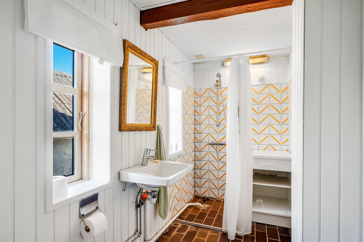 Der er 1 badeværelse med bruseniche og 2 toiletter, heraf 1 gæstetoilet.