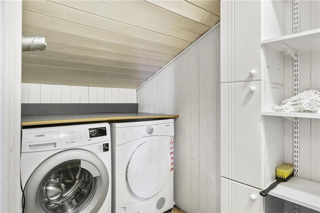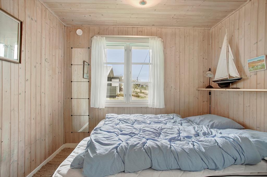 Atmosfæren er helt i top inden døre i dette hyggelige sommerhus, der er opført i 1988 og sidenhen omsorgsfuldt renoveret. Med lyse trævægge, hvide gardiner og sprossevinduer besidder huset en stor portion ægte sommerhuscharme, og stuens brændeovn er også med til at gøre det til et dejligt sted at tilbringe tiden. Stuen ligger i åben forbindelse med køkkenet, og samlet set er det et dejligt opholdsrum med god plads til madlavning, brætspil, krimilæsning og andre hyggeaktiviteter. I den ene ende af rummet har I en alkove, og her kan gardinet trækkes for, hvis den skal bruges som soveplads om natten. Huset rummer også to værelser, så alt i alt er der plads til fem personer. Planløsningen byder også på et bryggers med vaskefaciliteter og et badeværelse med bruser.