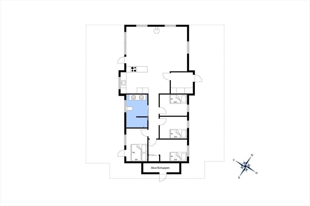 Sommerhuset, som er opført i 2006, har en intet mindre end glimrende planløsning til seks personer. Her er nemlig fire soveværelser at brede sig på, hvoraf et er indrettet med en dobbeltseng og to med enkeltsenge, og på det fjerde værelse kan en madras trækkes ud fra sengen, så her er der også plads til to overnattende. Sommerhuset består derudover af et flot og rummeligt badeværelse med glasbruseniche og to håndvaske. I entréen står en vaskemaskine, så I nemt kan friske feriegarderoben op, hvis det er nødvendigt. Endelig er der opholdsrummet, som består af et stort køkken og stue i åben forbindelse. Det stilfulde møblement passer godt til de marehalmsklædte naturomgivelser, som de mange vinduer giver udsigt til, og det højloftede rum er desuden udstyret med en brændeovn, så aftenhyggen kan foregå i skæret fra de levende flammer.