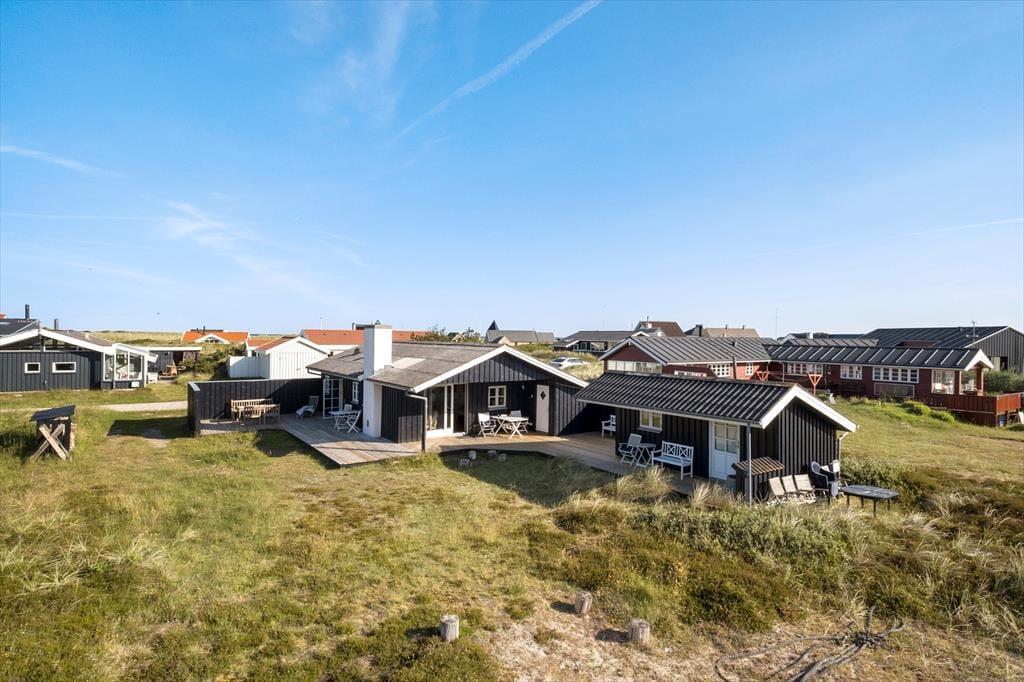 Bare omgivelserne, udsigten og det skønne terrassemiljø, er grund nok til at vælge dette sommerhus i Lild Strand. Huset er beliggende kun 215 meter fra Vesterhavet og når I nyder freden og solskinnet på terrasserne, kan I skue ud over den vidtstrakte klithede og se Lild Klitplantage i det fjerne.