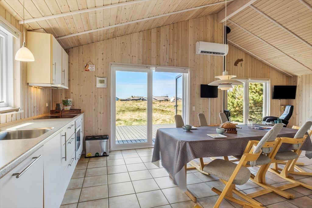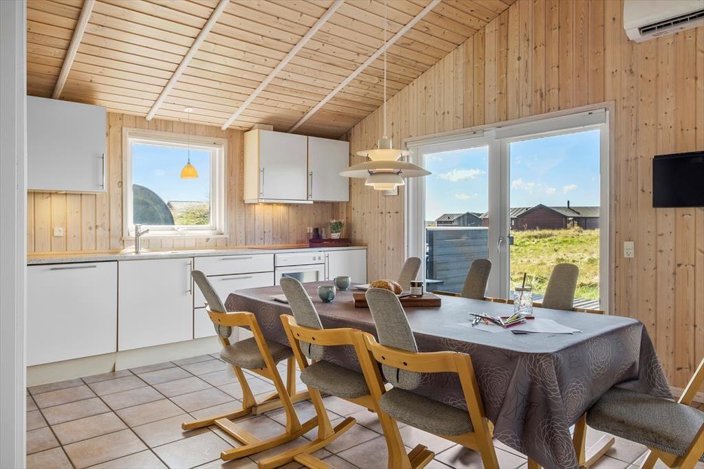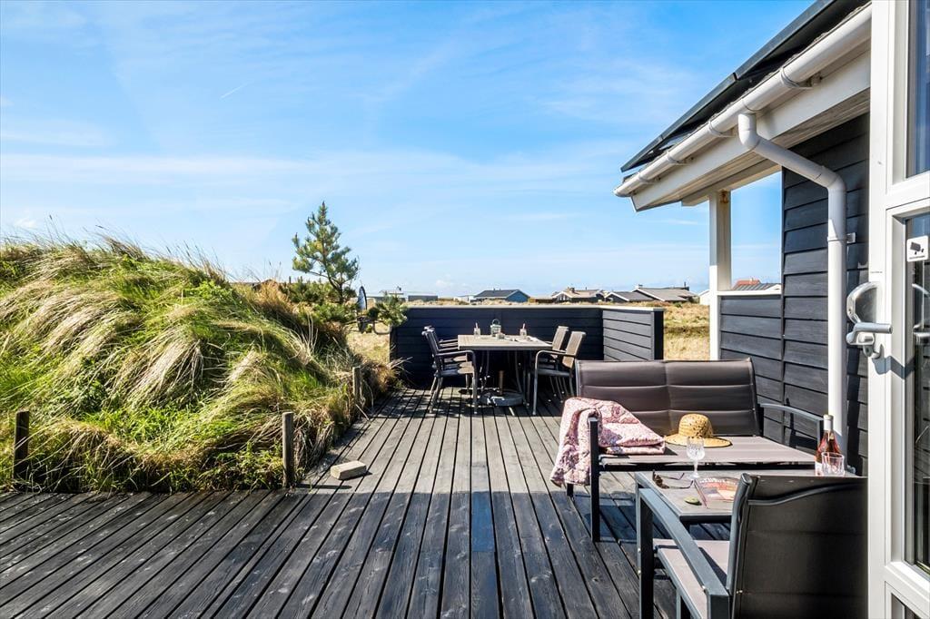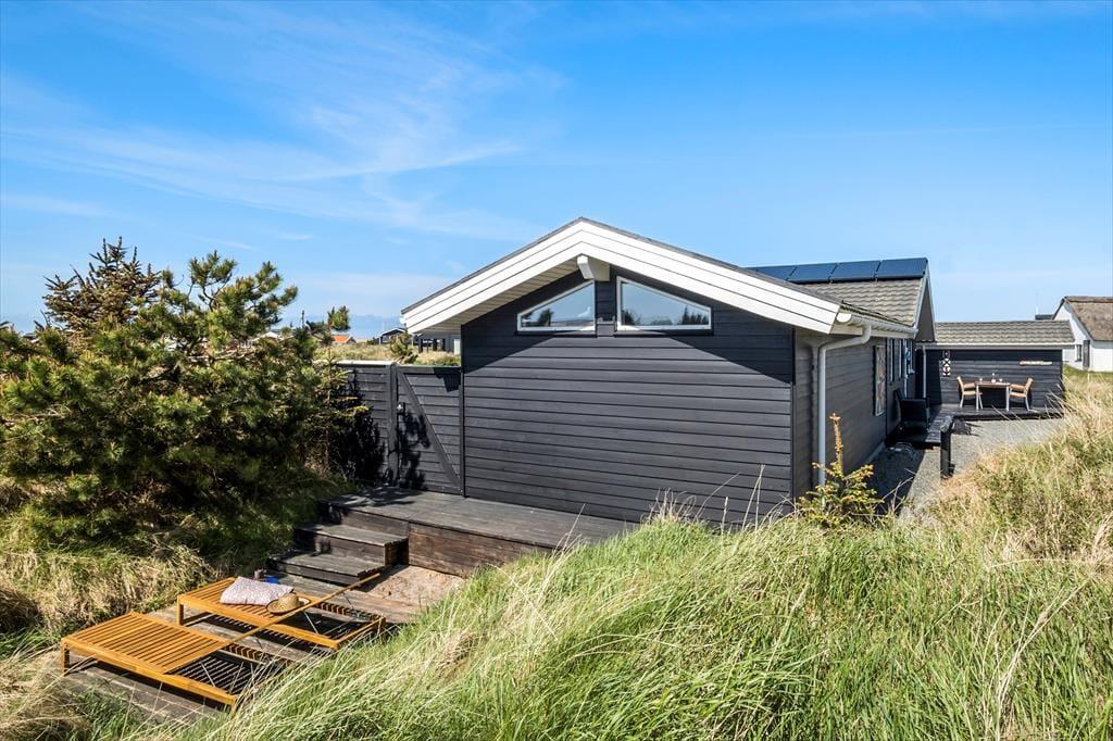 I kommer til at bo i en helt unik natur, når I holder ferie i dette smukke sommerhus i det lille fiskerleje Lild Strand. Fra både stue og køkken er der en betagende udsigt over den fredede klithede. Vesterhavet venter blot 300 meter væk.