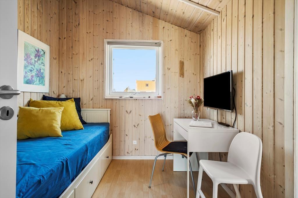 Huset på Gråbakkevej 4 er oplagt til uforglemmelige ferier i al slags vejr. På en råkold dag kan I hygge jer inden døre nær stuens brændeovn, mens I nyder det flotte lysindfald og udsigten over det betagende landskab. Og når temperaturene er lune og sommerlige, kan I holde havedørene åbne, så I har fri adgang til terrasserne, hvor I kan komme hele vejen rundt om sommerhuset. De store terrassedøre lukker lyset ind og giver jer let adgang til udelivet. Der er tre soveværelser, hvoraf det ene kun har adgang via terrassen ved vildmarksbadet. Skulle alle ønske at sove i selve huset i stedet, findes der en sovesofa til formålet.