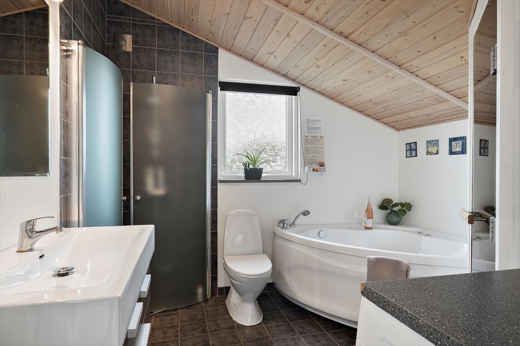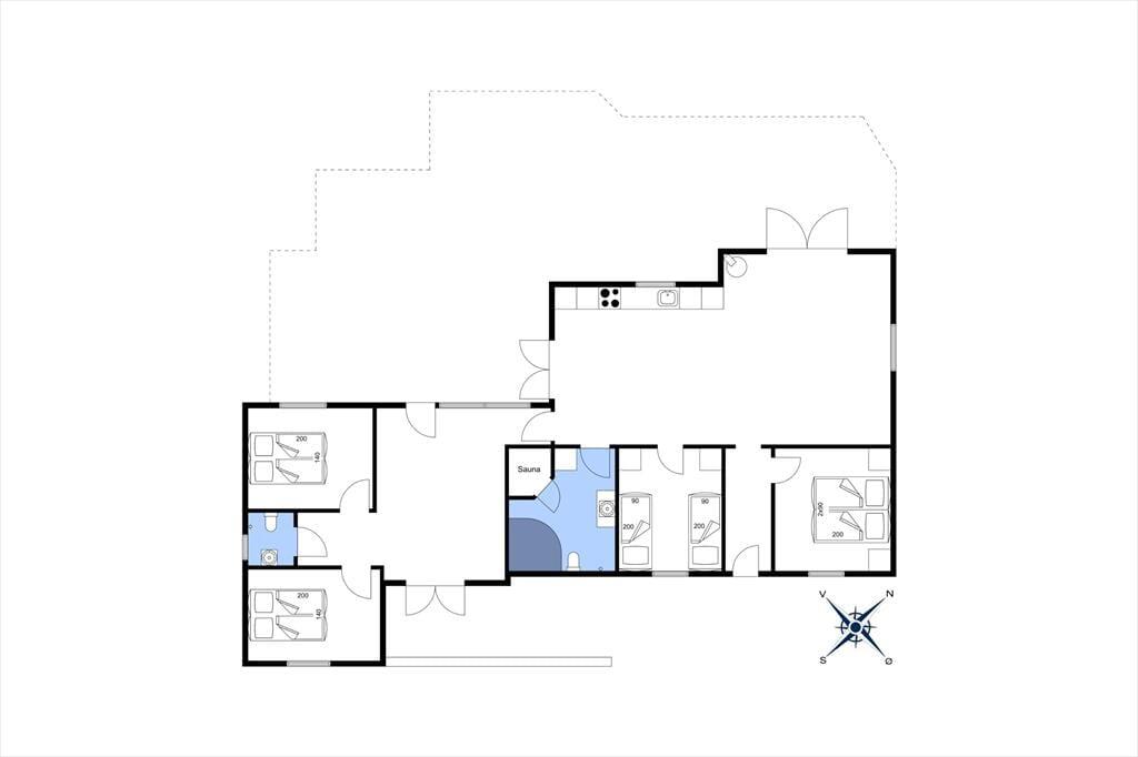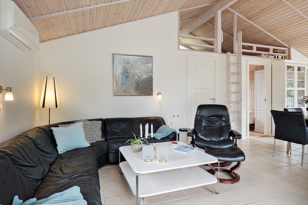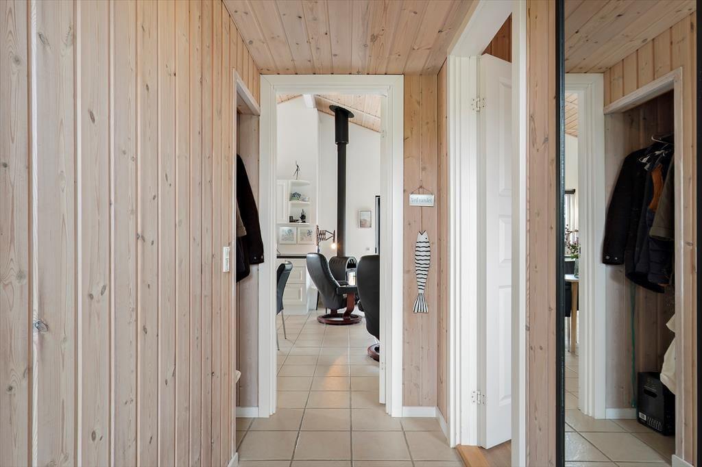 Sommerhuset er et kønt og velholdt eksemplar, der har en dejlig atmosfære inden døre, så du kan straks føle dig hjemme. Der er 108 m2 at gøre godt med, og planløsningen byder blandt andet på fire gode soveværelser og to badeværelser, så det er muligt at være otte personer, hvis du vil invitere familie eller venner med. På det ene badeværelse er der spabad og sauna, så efter en dag ude i naturen kan du og dine kære forkæle jer selv med en eftermiddag fuld af wellness og afslapning. Stuen er også et dejligt sted at koble af: Her kan I hygge jer med bøger, film og kortspil i sofaafdelingen, eventuelt med ild i brændeovnen og duften af friskbagte boller fra det åbne køkken.