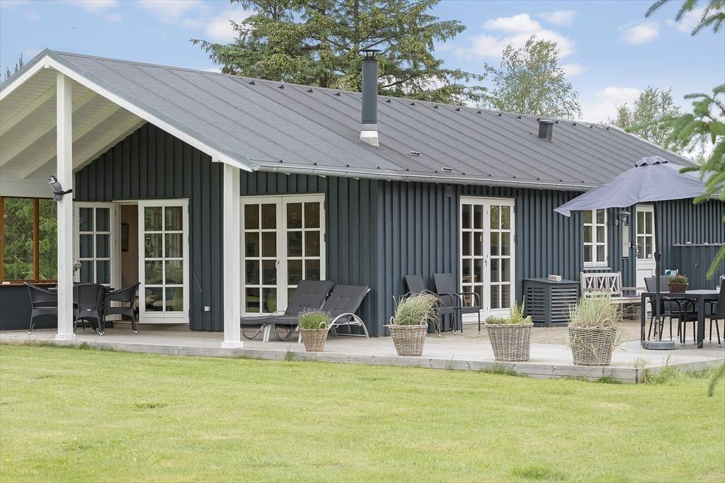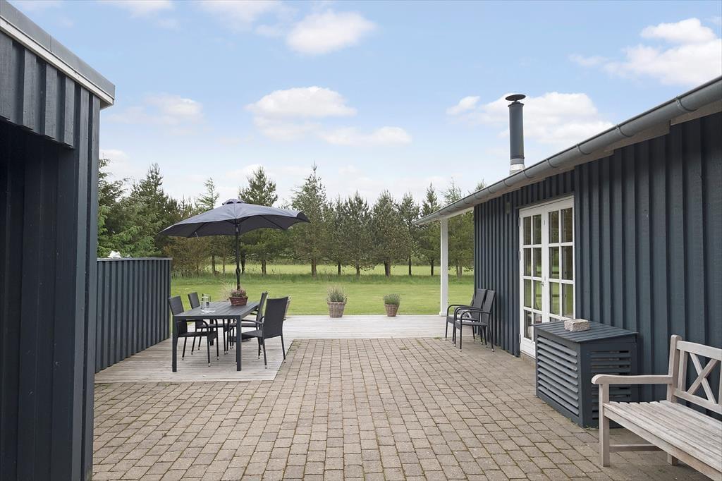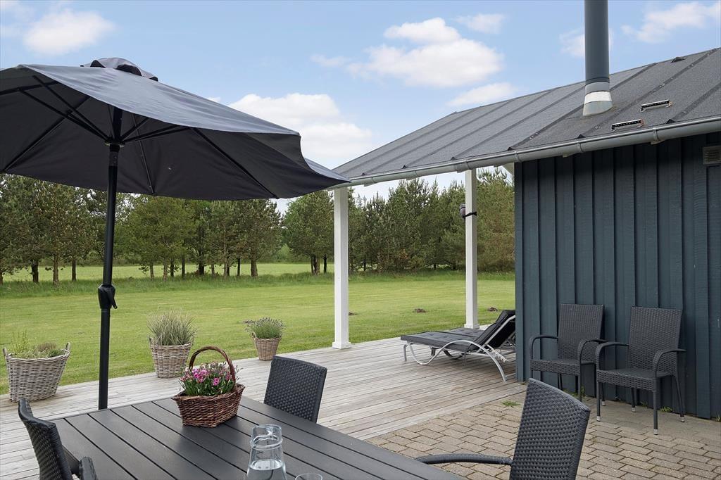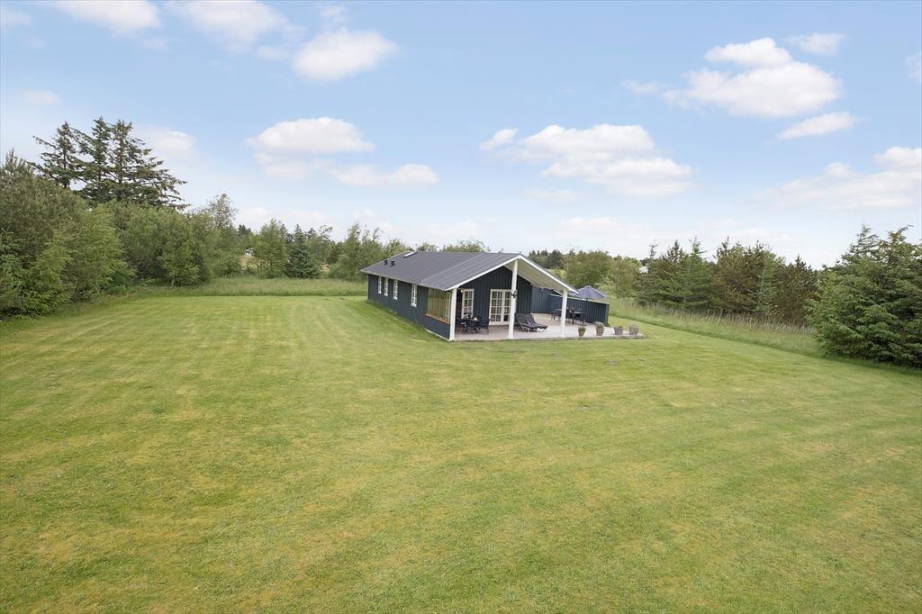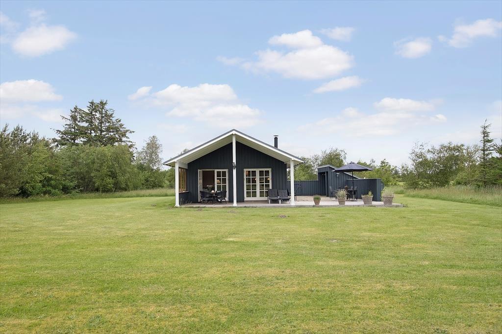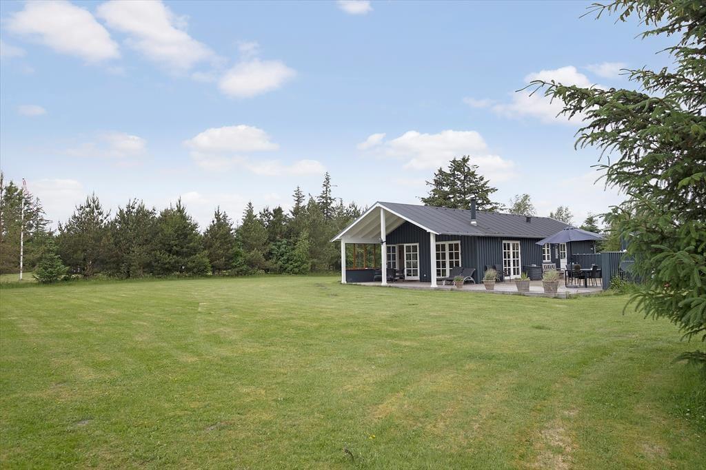 Sommerhuset ligger i et fredeligt og roligt område med udsigt til marker og skov fra den store naturgrund, ikke sjældent kan man fra terrassen se vildt spankulere rundt tæt på huset. På grunden og græsplænen, er her masser af plads til sjov og leg.