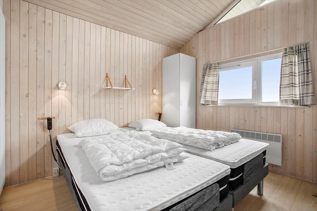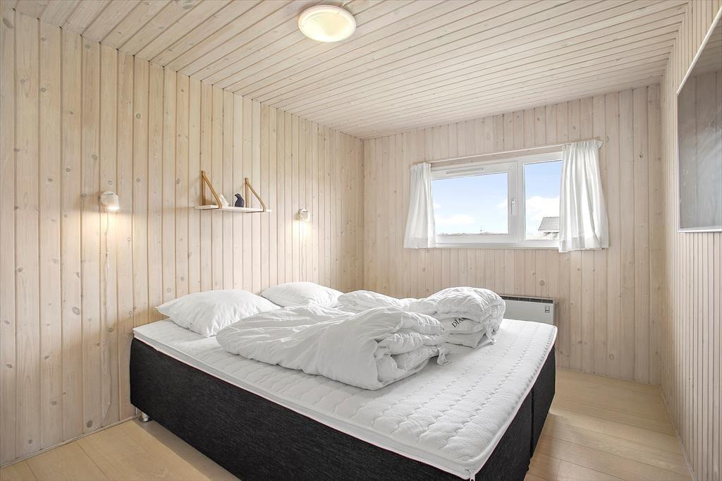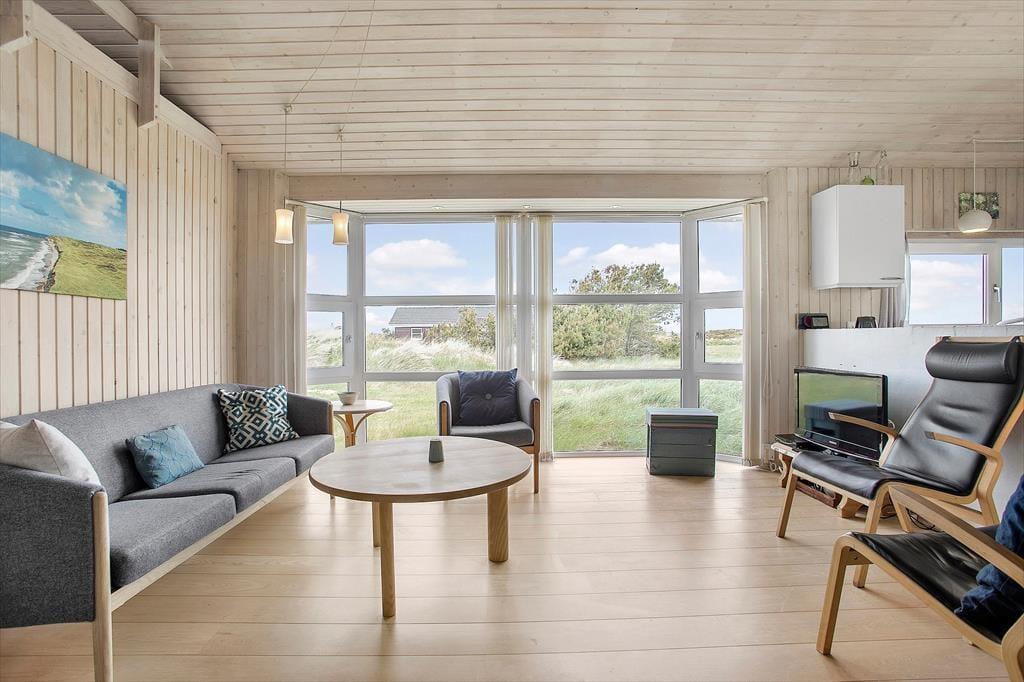 Sommerhuset er skønt indrettet med dejlige møbler og gode faciliteter, så man rigtig kan nyde livet og slappe af under sin ferie. Sommerhusets centrum er det store køkken-alrum, hvorfra man kan overskue hele huset. Der er her adgang til de 3 værelser, hvoraf et er med dobbeltseng med elevation, et med en god dobbeltseng og et med køjeseng; så her har man virkelig gode muligheder for en sove godt og behageligt og vågne friske og veludhvilede op om morgenen. De sidste 2 sovepladser findes på hemsen, hvorfra man også kan nyde havudsigten. Derudover rummer sommerhuset et dejligt badeværelse med sauna, vaskemaskine og tørretumbler, så man hele tiden kan have rene og tørre håndklæder til de mange badeture i Vesterhavet.