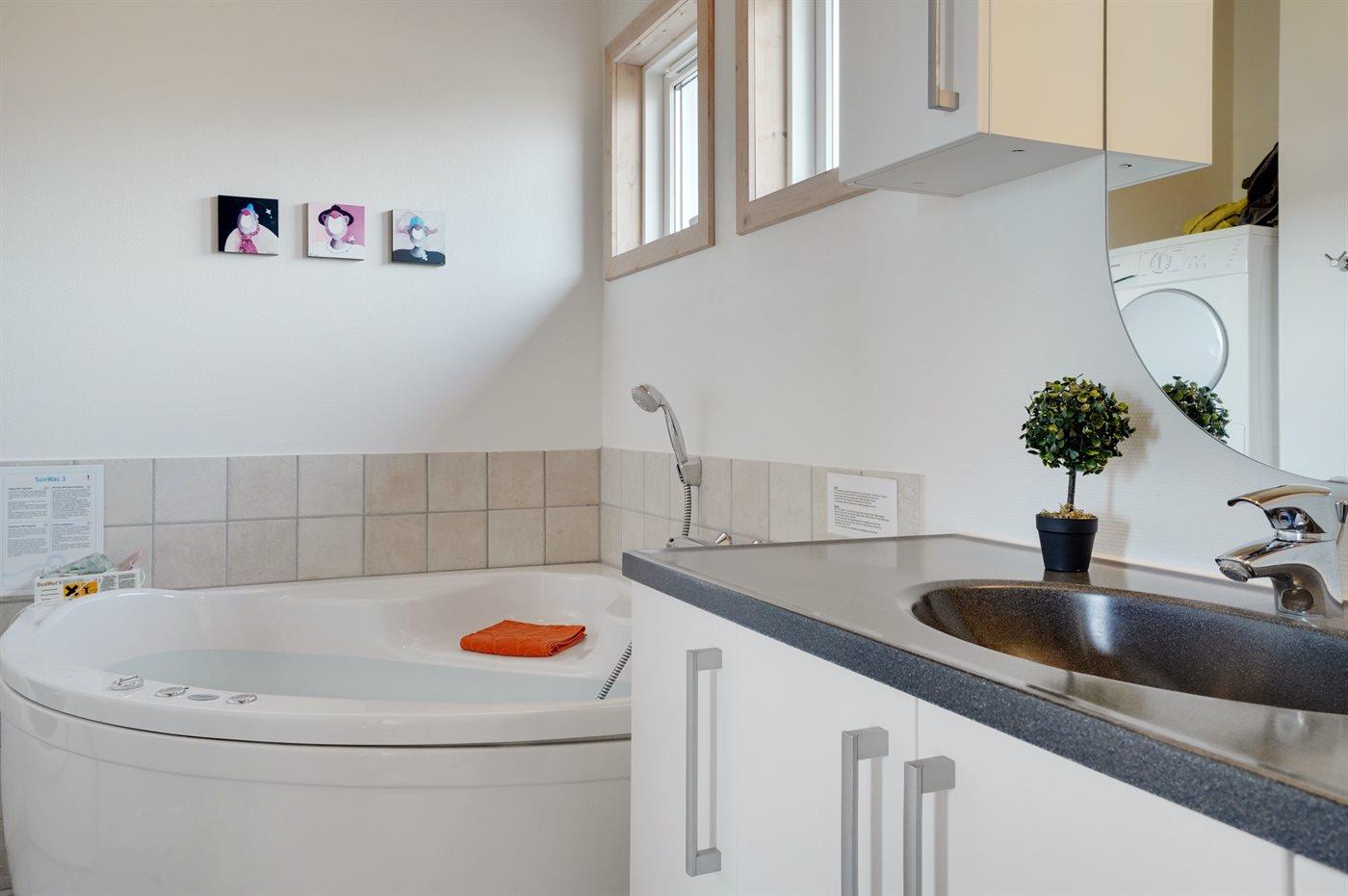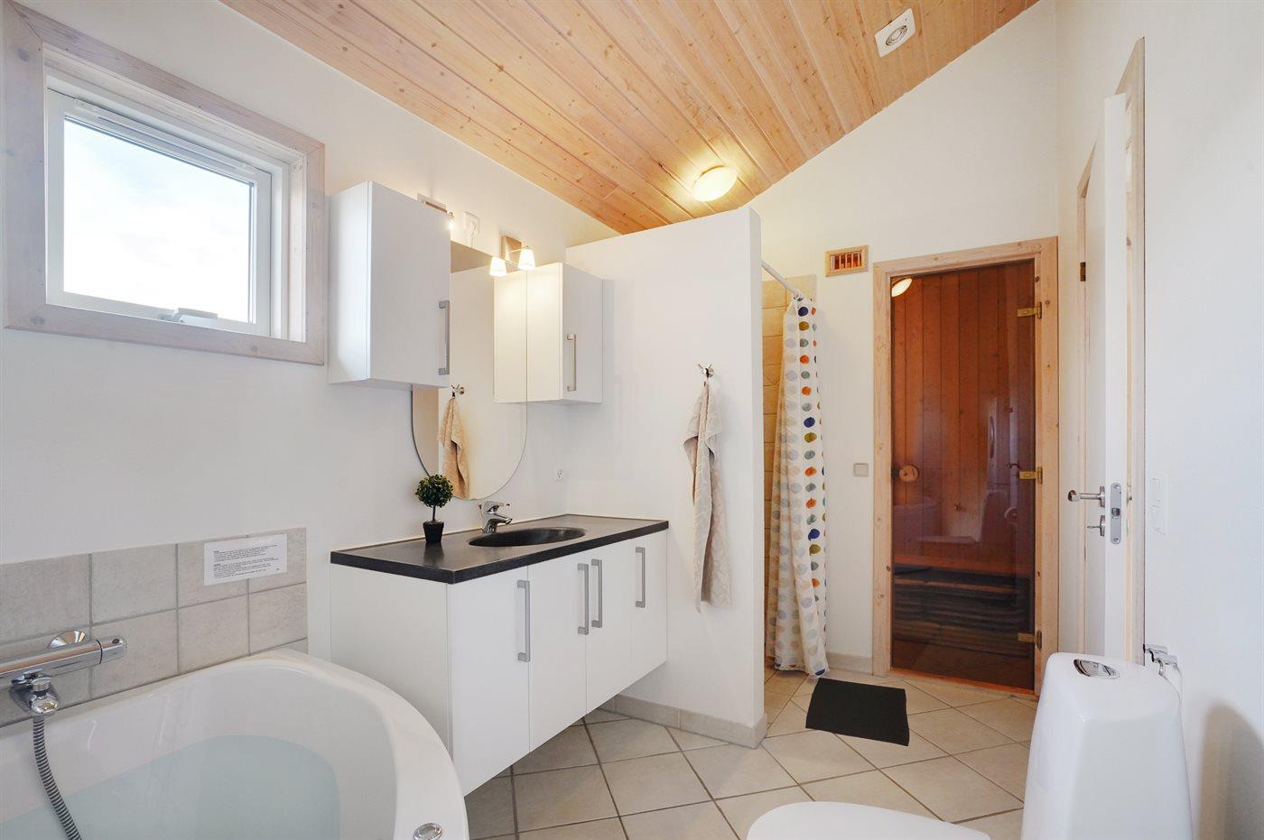 Der er 1 badeværelse med bruseniche og 2 toiletter, heraf 1 gæstetoilet. Der er gulvvarme på 1 badeværelse. Der er gulvvarme på gæstetoilettet. I saunaen er der mulighed for afslapning.