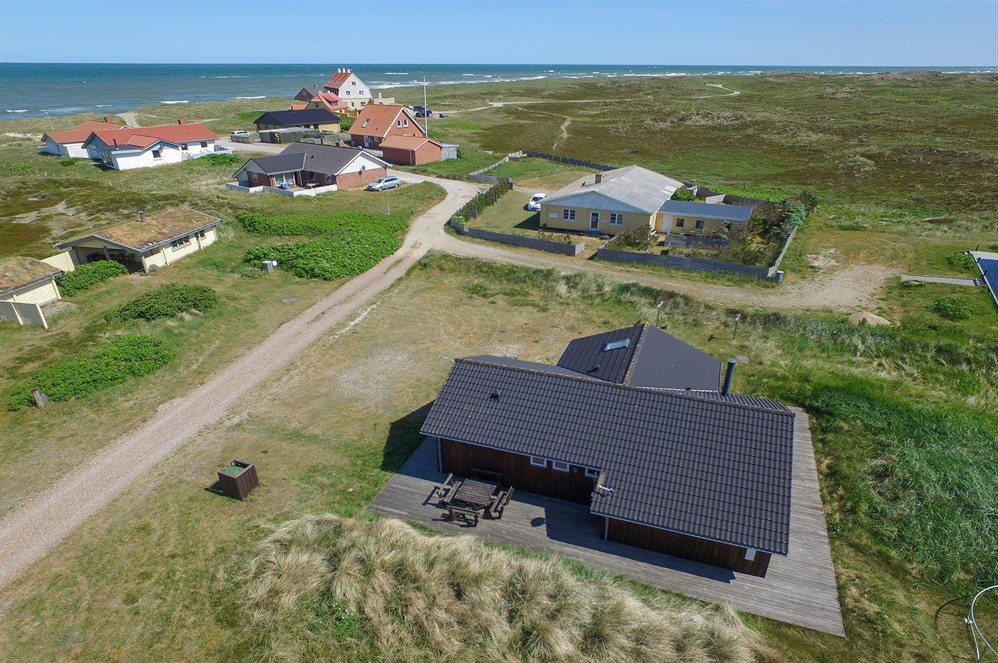 Ferieboligen er beliggende på en 1200 m² stor naturgrund. Der er 150 m til havet. Nærmeste forretning er beliggende i en afstand af 7000 m. Til ferieboligen hører 118 m² terrasseareal. Desuden er der 12 m² overdækket terrasse. Der er redskabsrum. Parkering ved ferieboligen.