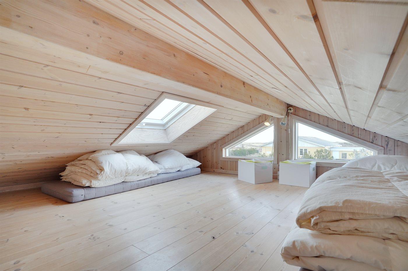 Der er i alt 3 soveværelser. Sovepladserne fordeler sig på: 6 sovepladser i dobbeltsenge. 2 sovepladser på madrasser. 2 af disse sovepladser befinder sig på husets hems.