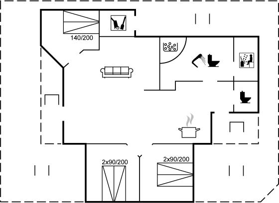 Et lækkert sommerhus med en fantastisk beliggenhed meget tæt på stranden. Til huset hører dejlige og til dels overdækkede terrasser med havemøbler. Bemærk, at sovepladserne på madrasser befinder sig på husets hems.