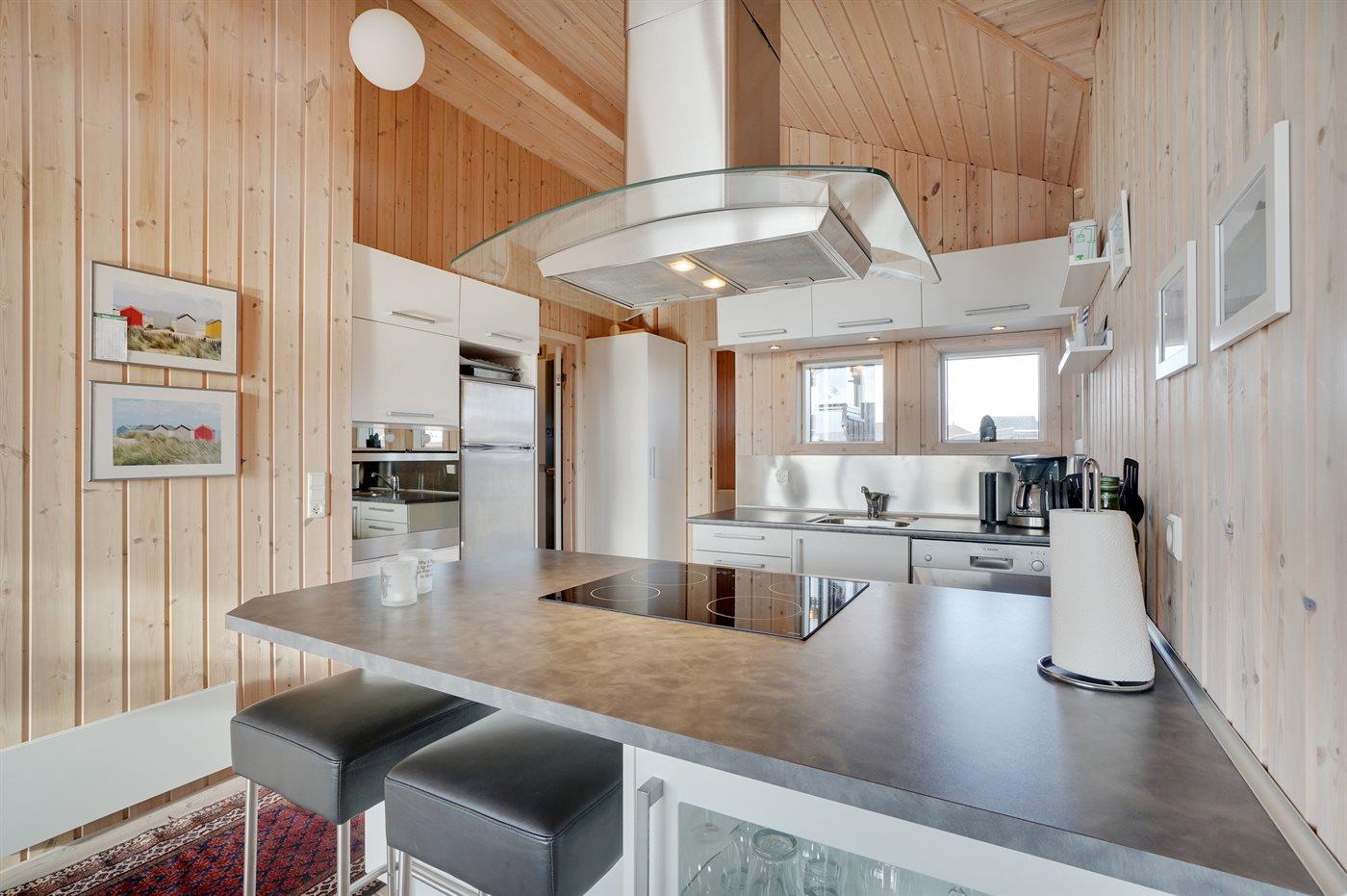 Køkkenet er udstyret med 1 køleskab. Der er 4 keramiske kogeplader, varmluftovn samt opvaskemaskine.