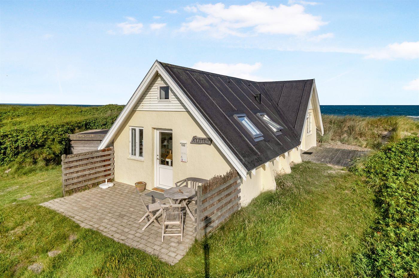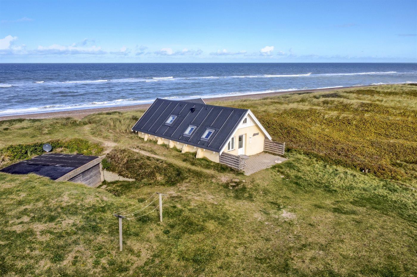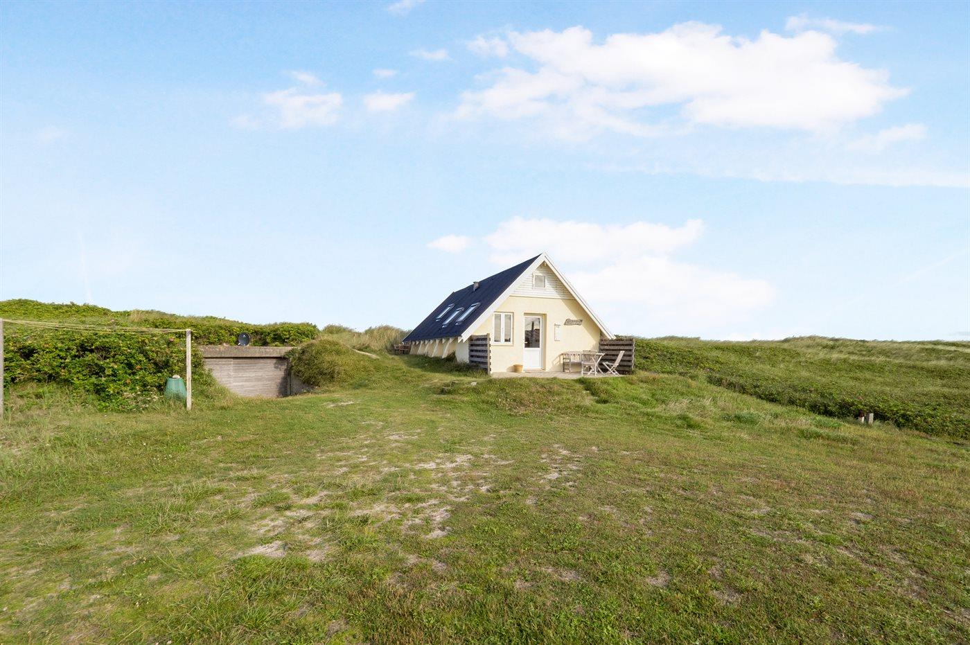 Kun et stenkast fra stranden ligger dette pæne sommerhus - på en stor klitgrund.